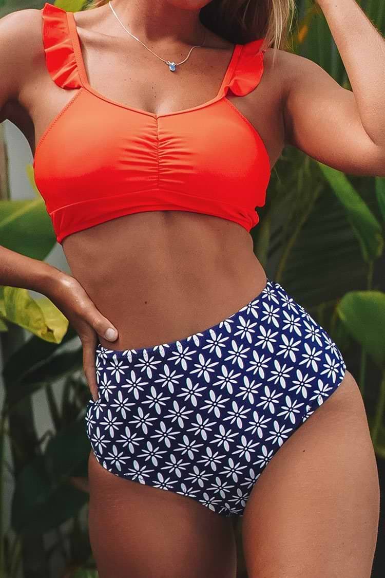 Tangerine Ruffled and High-Waisted Bikini