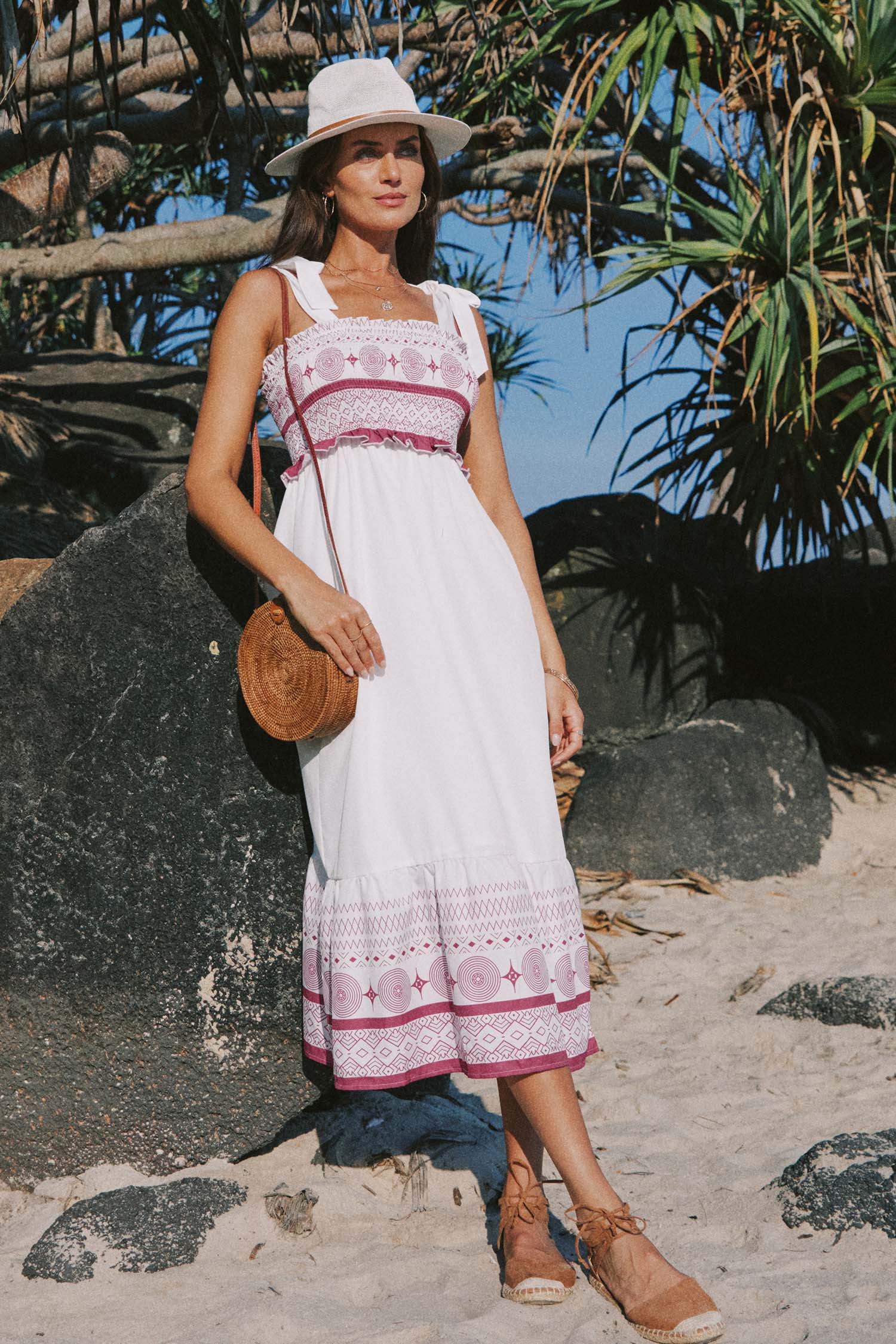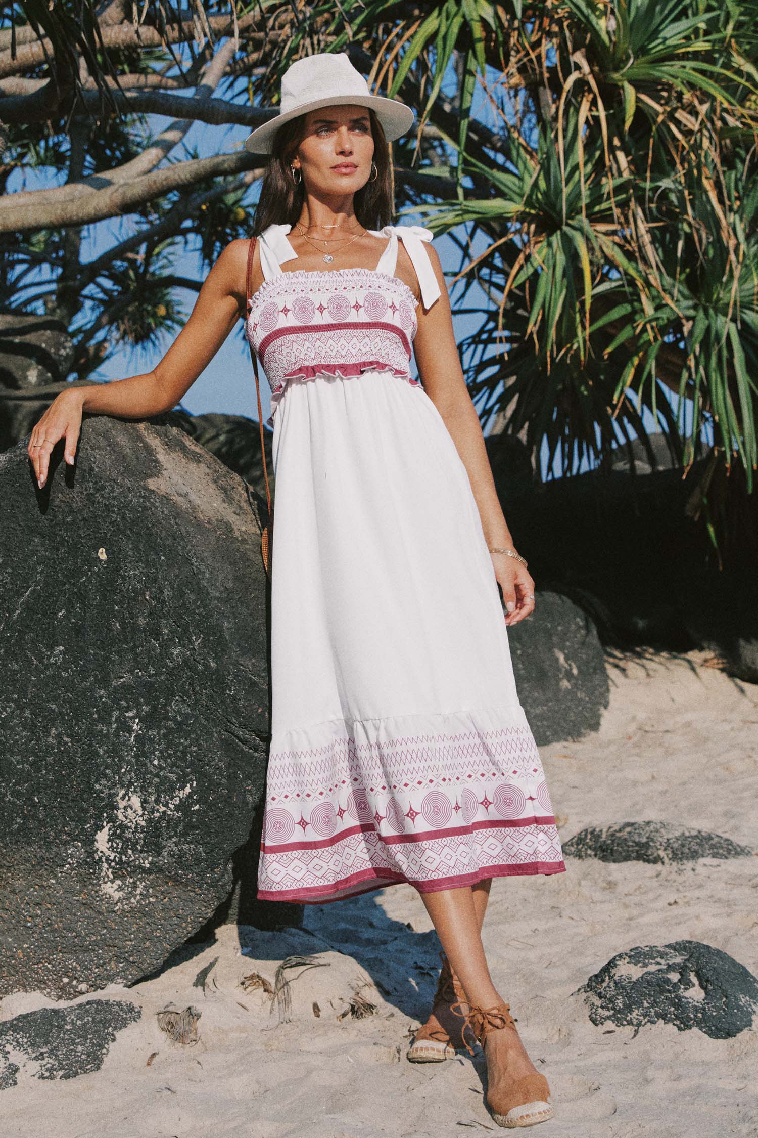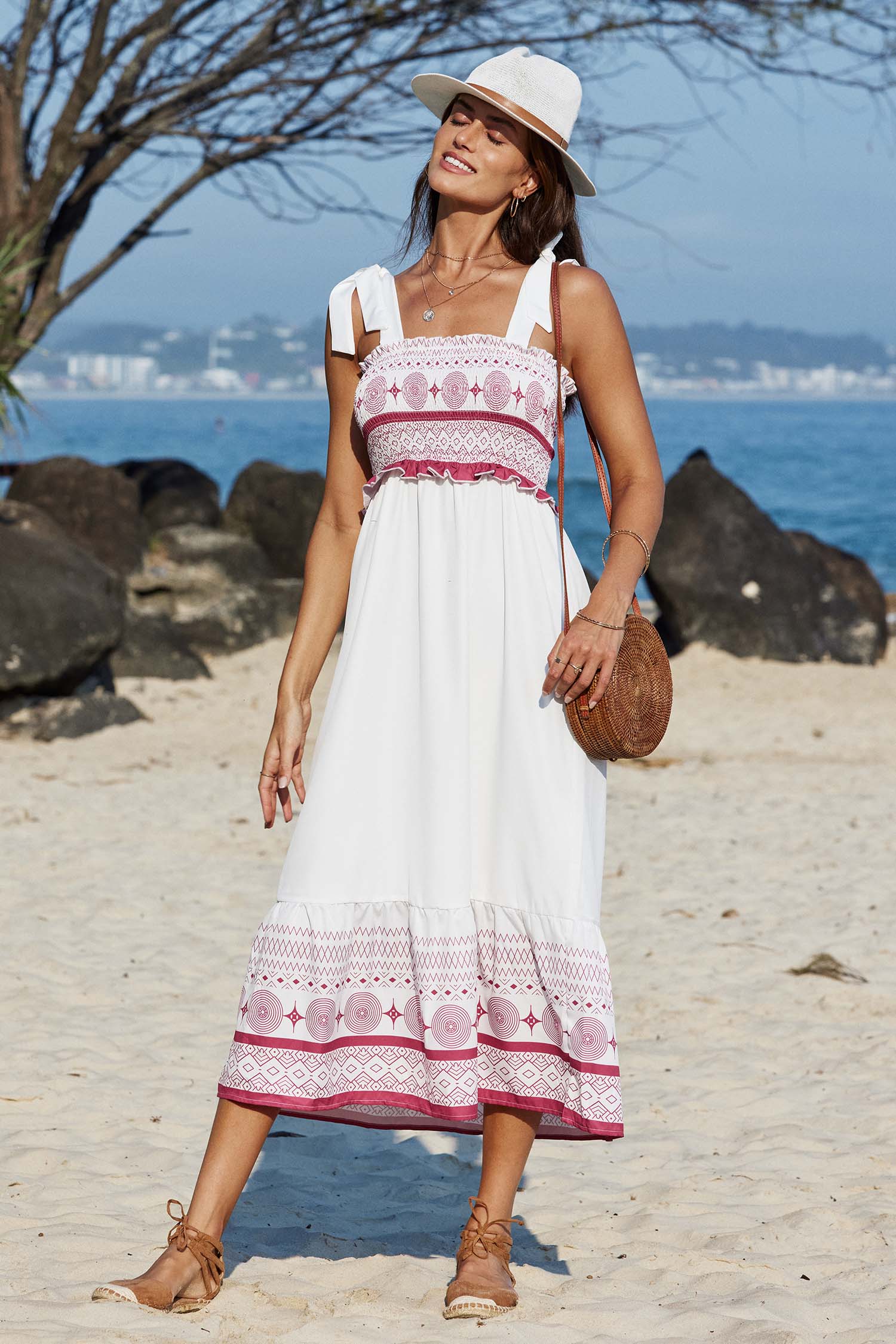 Tie-Shoulder Smocked Bodice Boho Maxi Dress