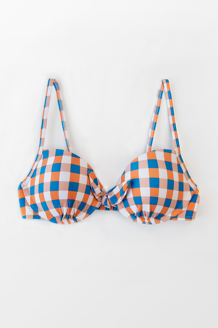 Tricolored Plaid Knotted Bikini Top