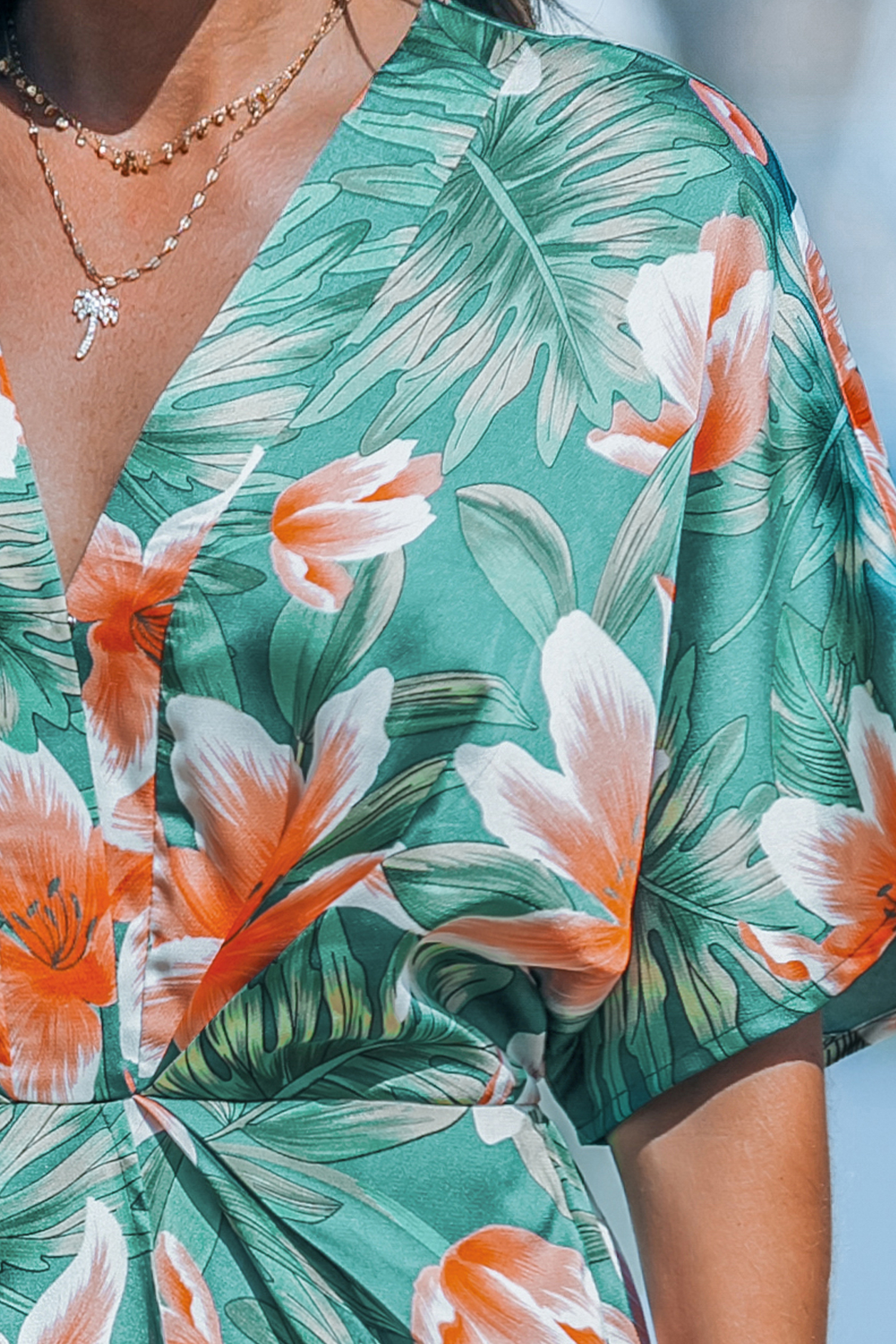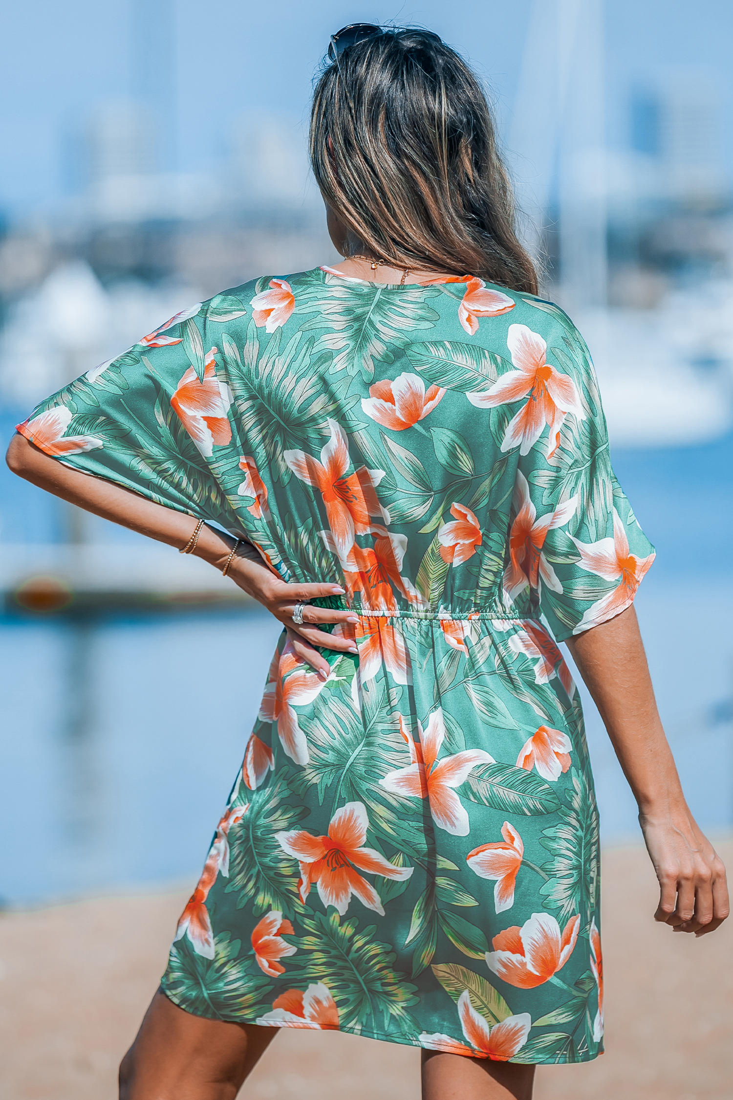 Tropical Dolman Sleeve V-Neck Mini Dress