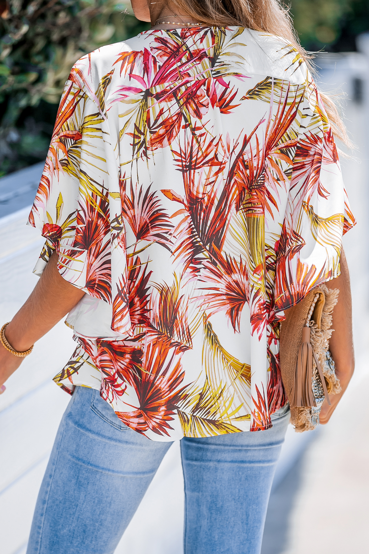 • Tropical Leaf Print Dolman Sleeve Shirt