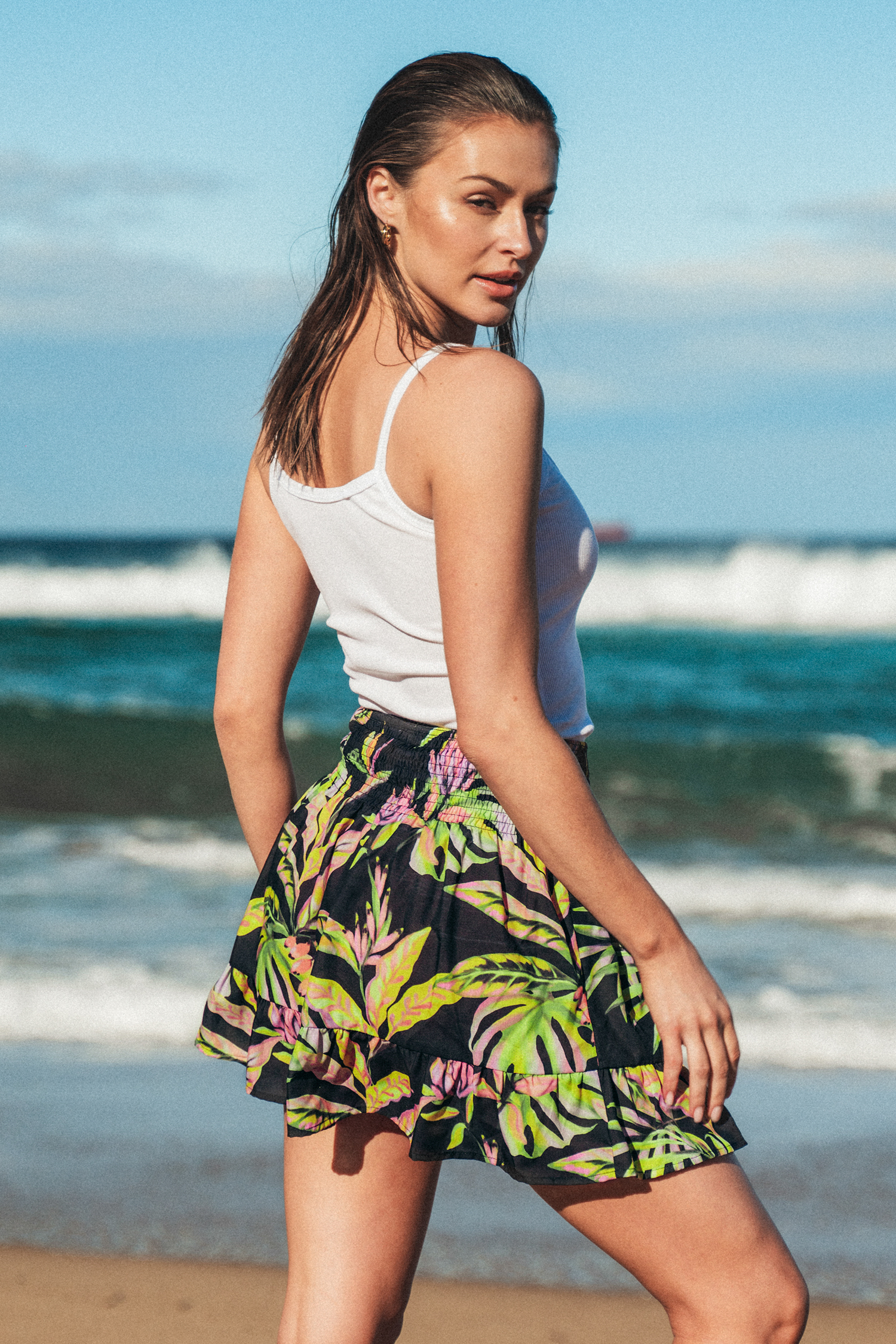• Tropical Leaf Print Smocked Skirt