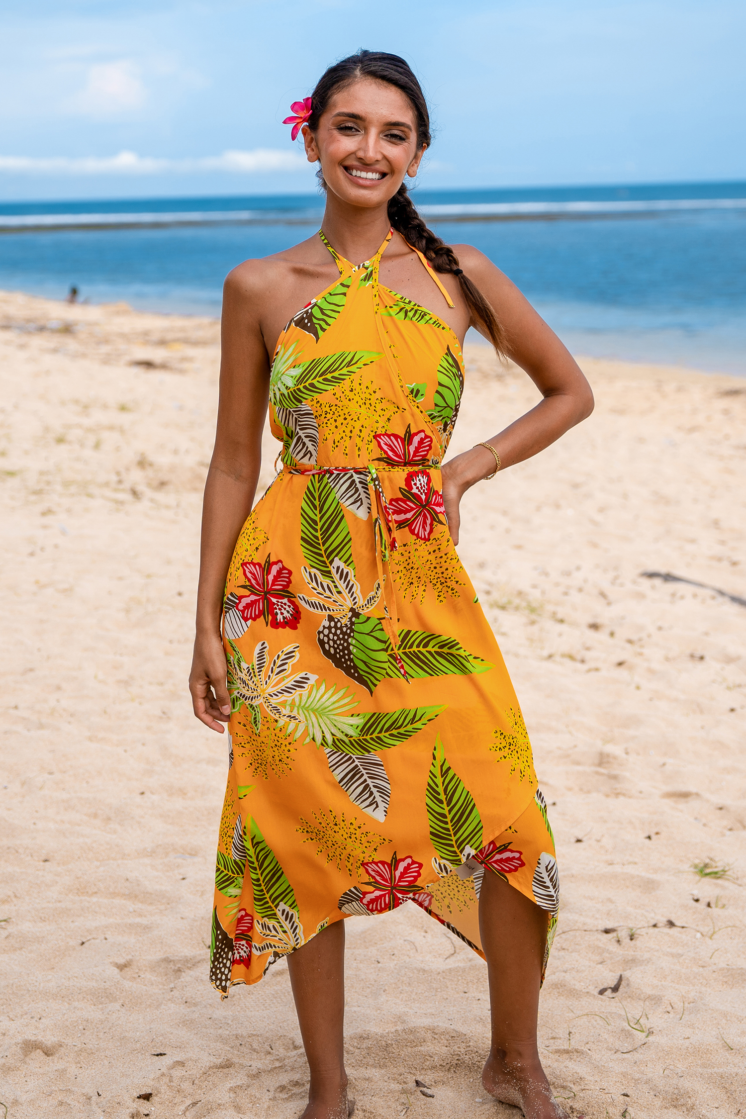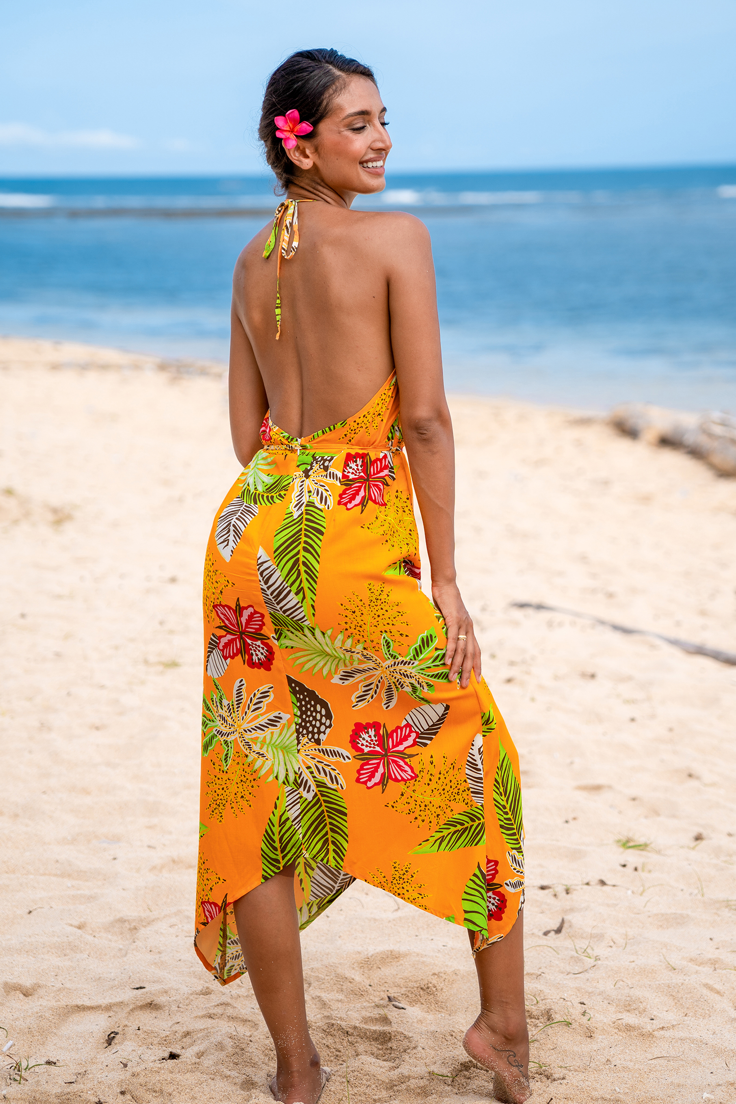 Tropical Sunset Asymmetrical Midi Dress