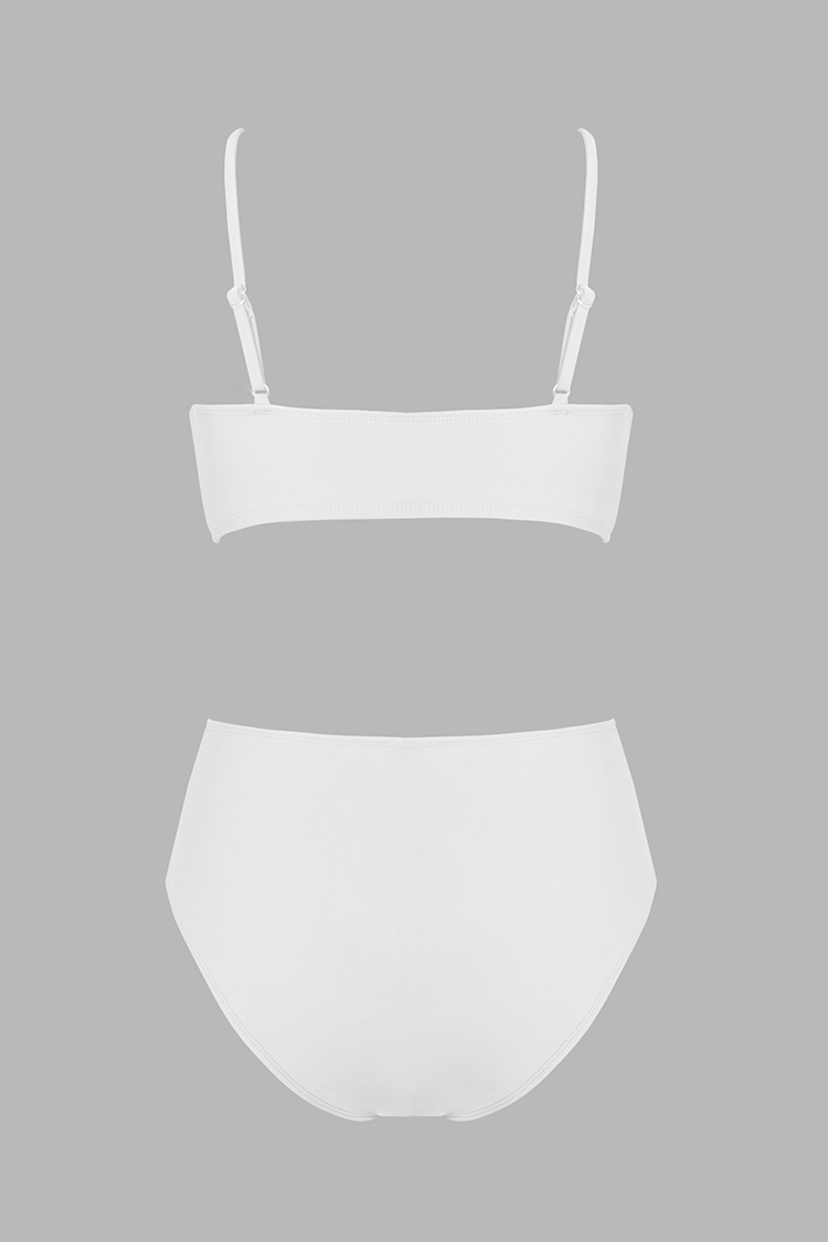 Twist-Front Bralette & Spliced High Waist White Bikini Set