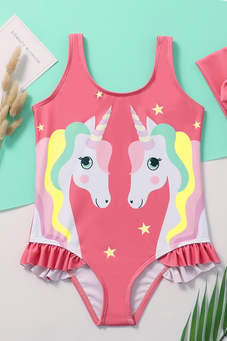 Unicorn Ruffled One Piece Swimsuit For Toddler Girls And Girls