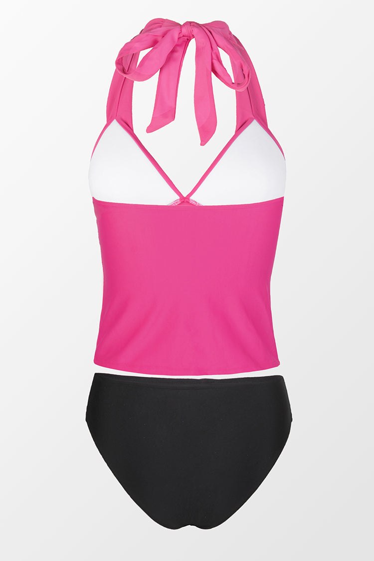 V Neck Halter Backless Tankini Bikini Set