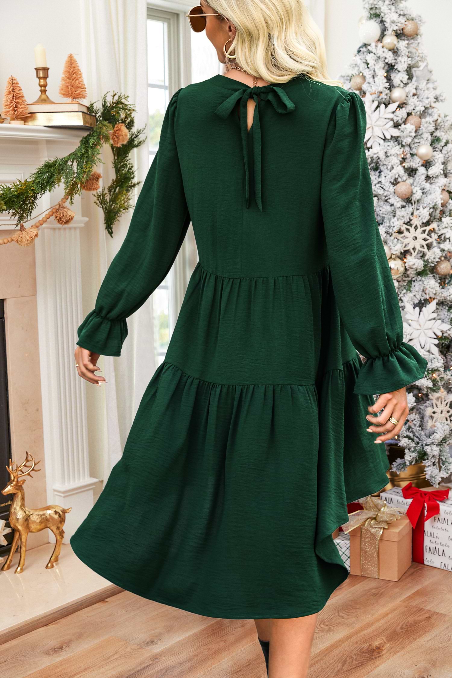 HomeV-neck Puff Sleeve Ruffle Mini Dress