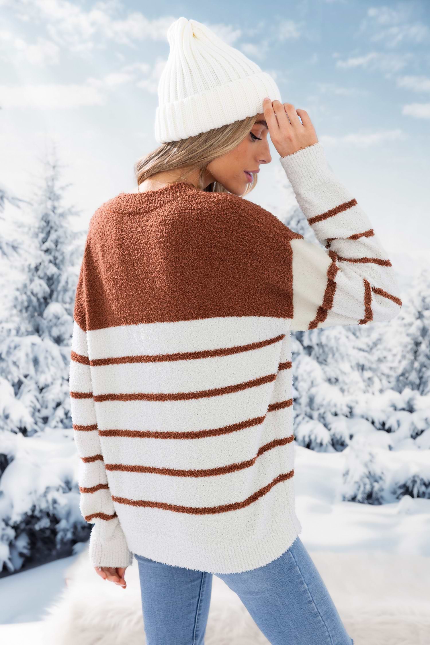 V-neck Stripes Rib-Knit Sweater