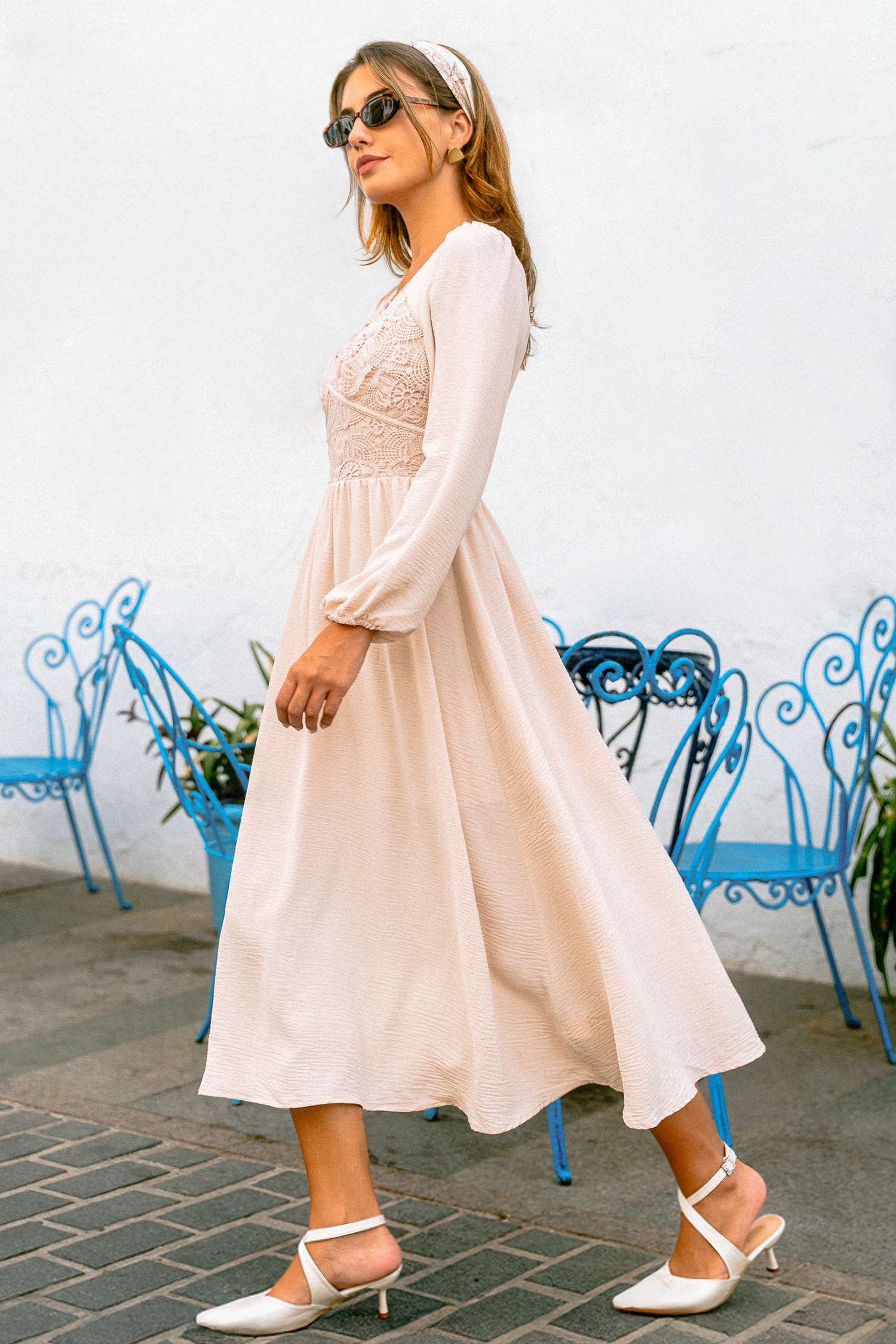 The Vintage Groove Cream Maxi Dress brings retro-inspired charm to your wardrobe! Its V-neckline, long sleeves, and flowing maxi length create a relaxed yet flirty silhouette.