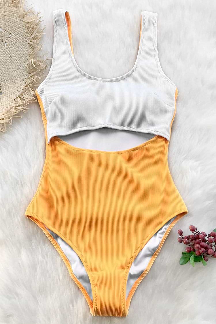 HomeWhite and Yellow Cut Out One-Piece Swimsuit