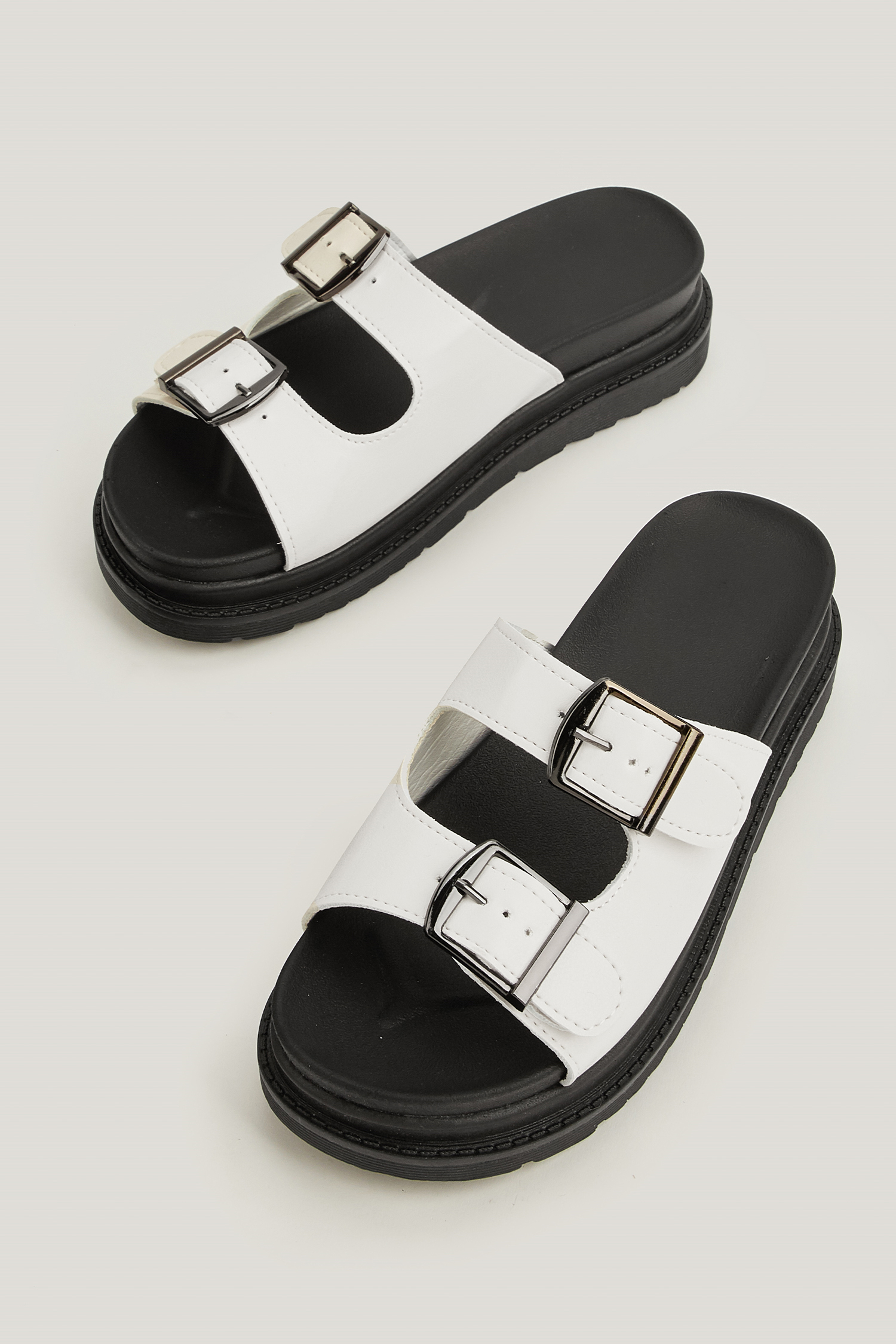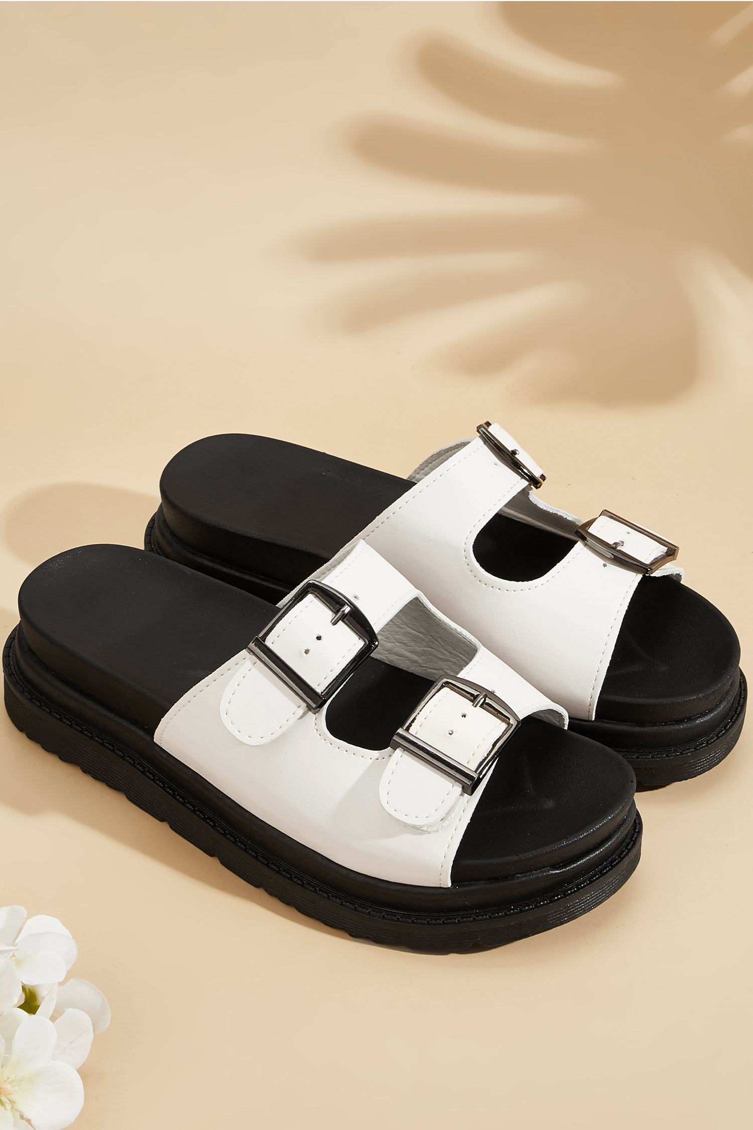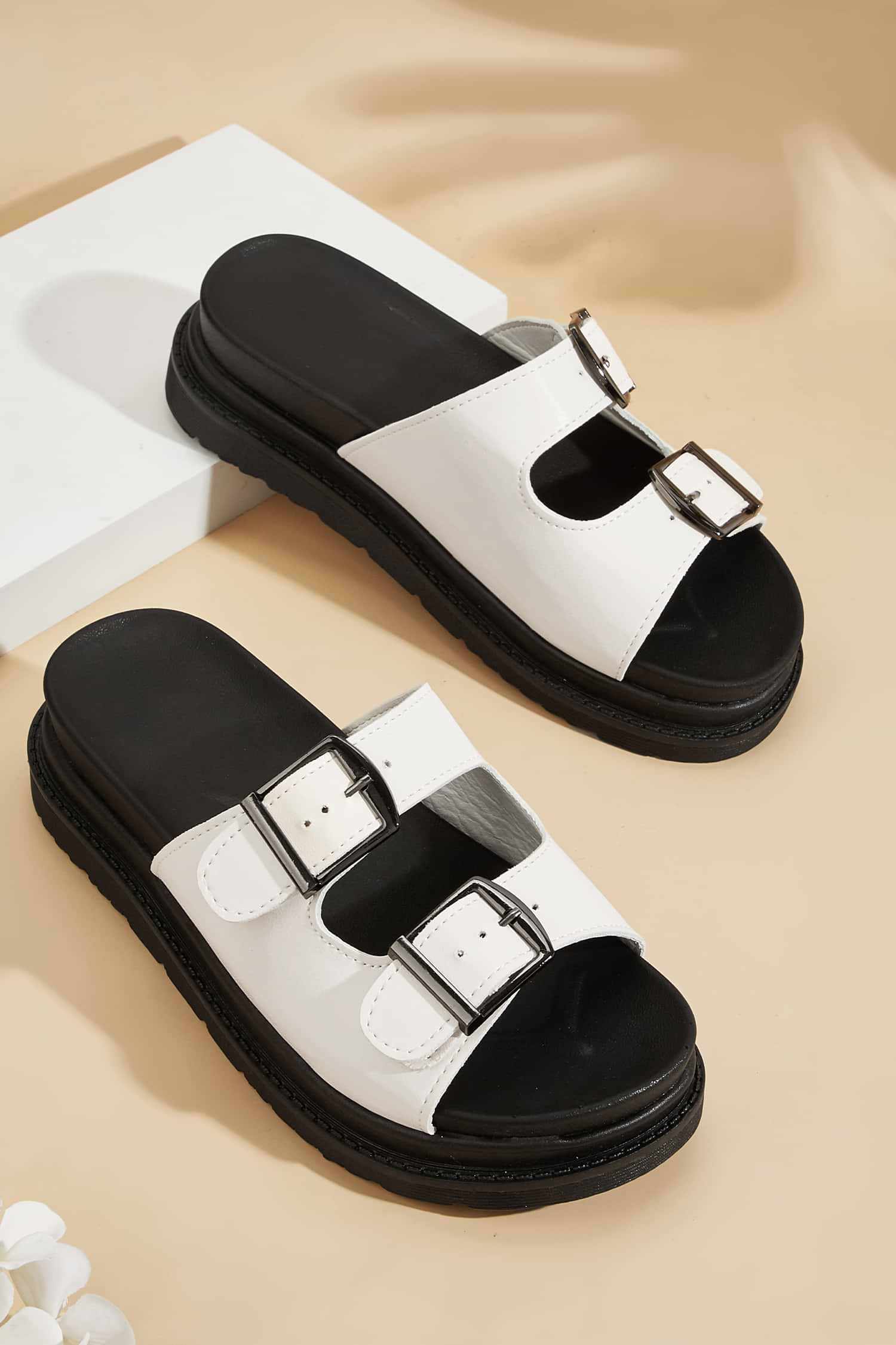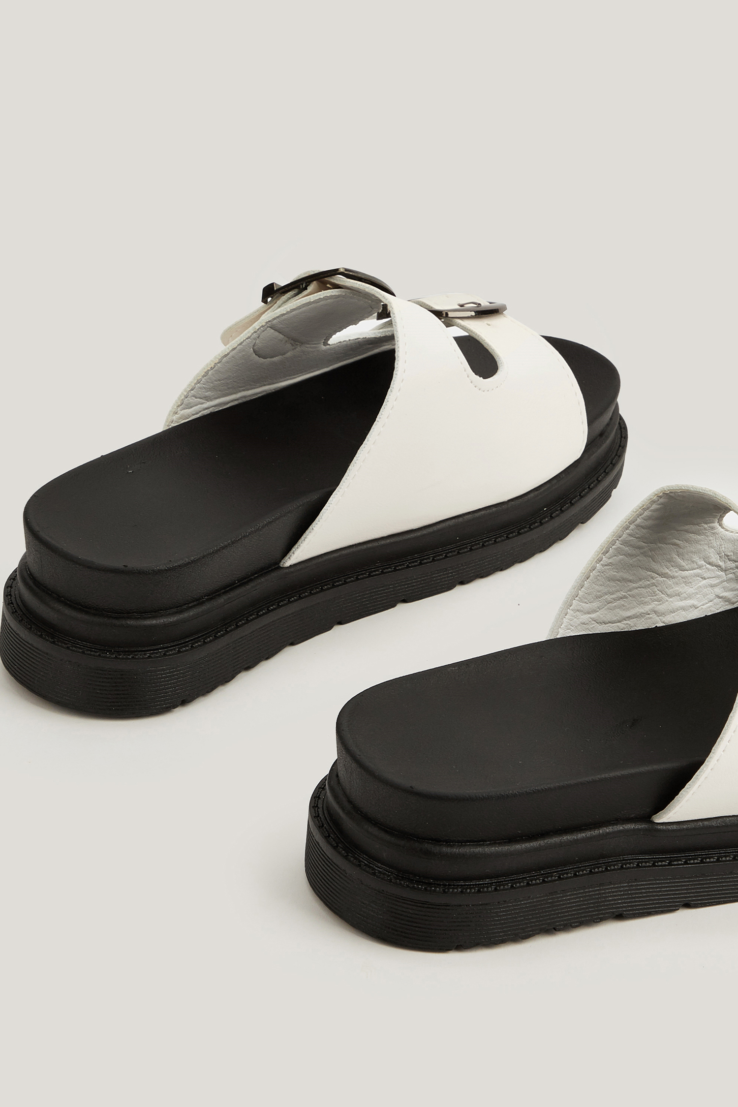 White Buckle Strap Platform Sandals
