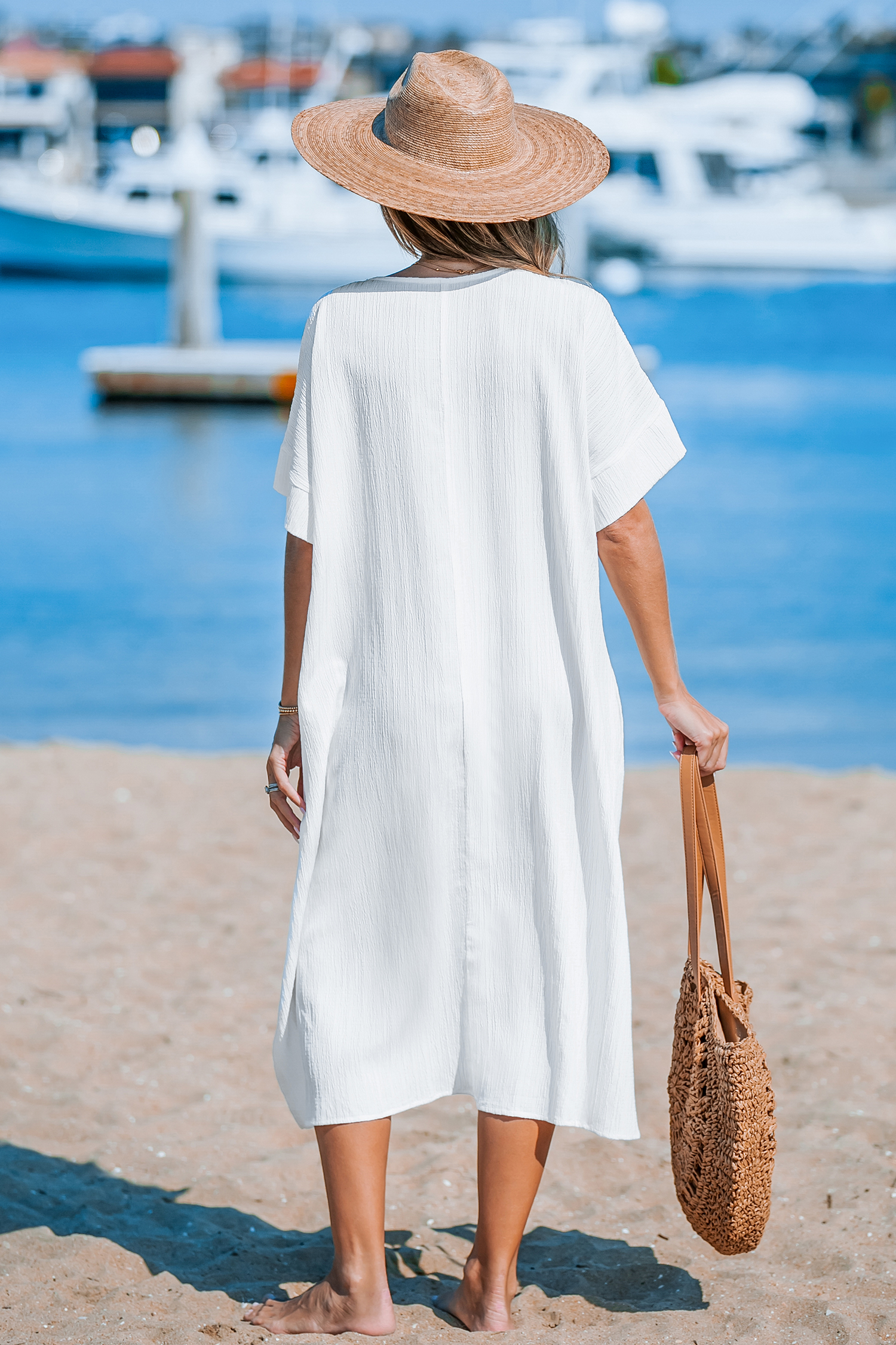 HomeWhite Dolman Sleeve Loose Fit Maxi Cover-Up Dress