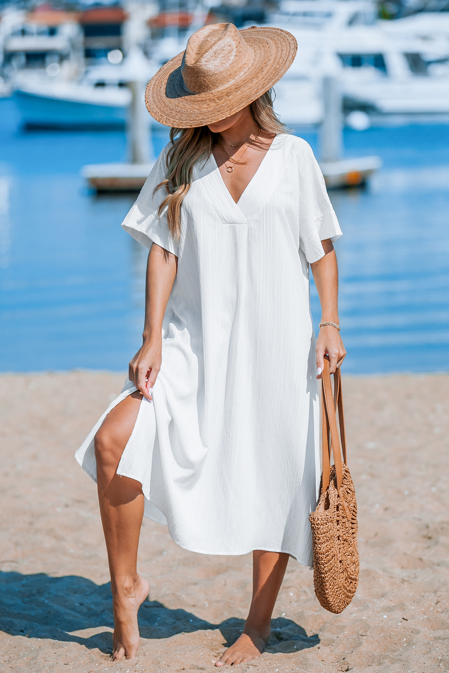 White Dolman Sleeve Loose Fit Maxi Cover-Up Dress