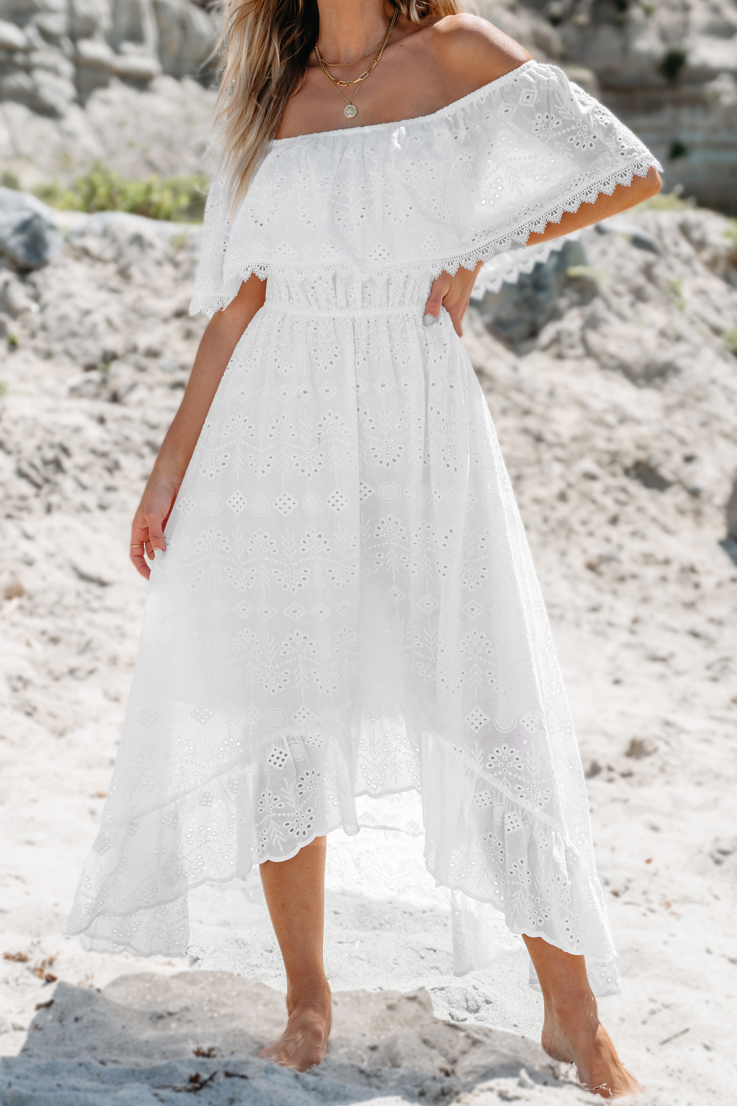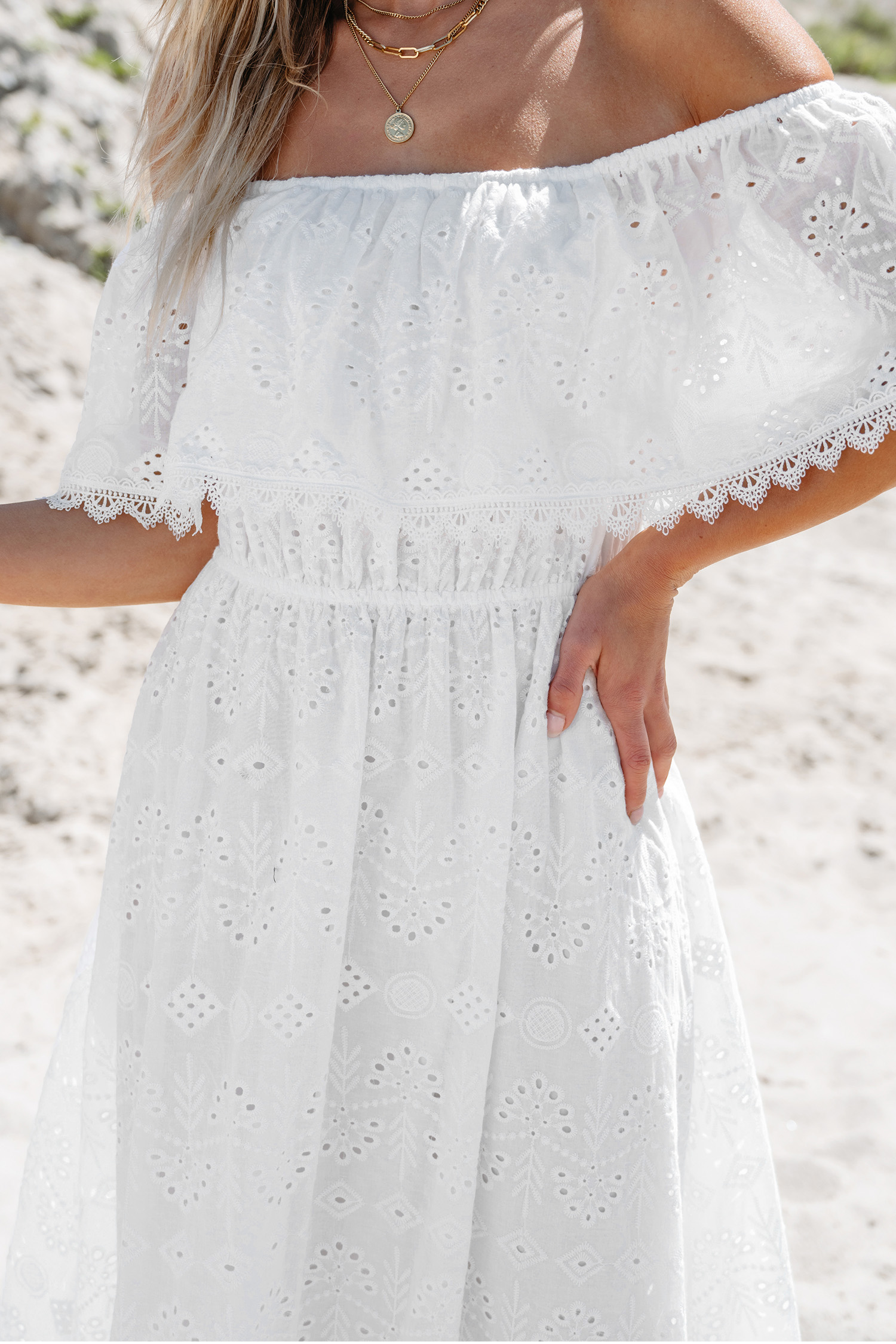 HomeWhite Eyelet Off-Shoulder Midi Dress
