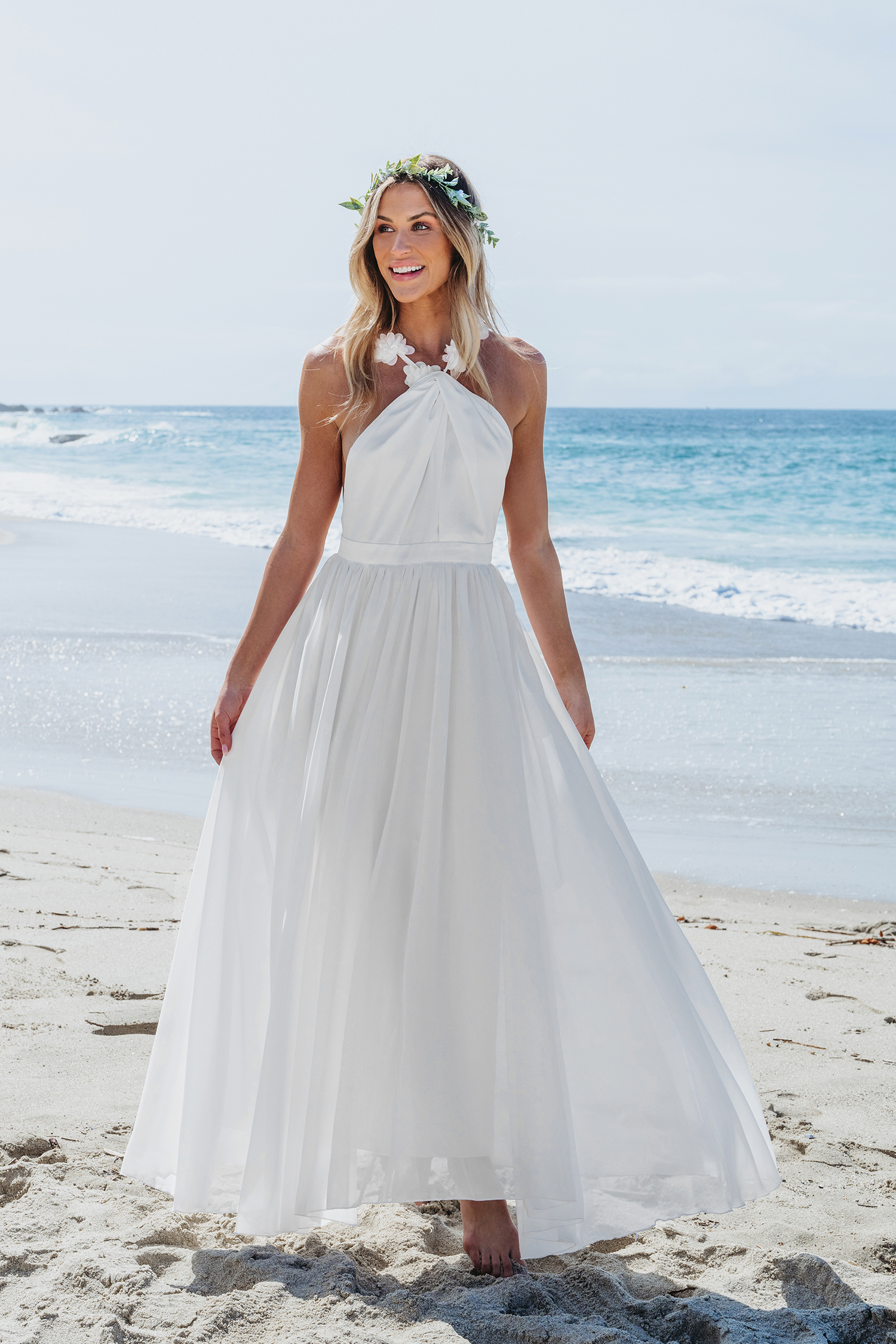 HomeWhite Floral Embellished Halter Neck Maxi Dress