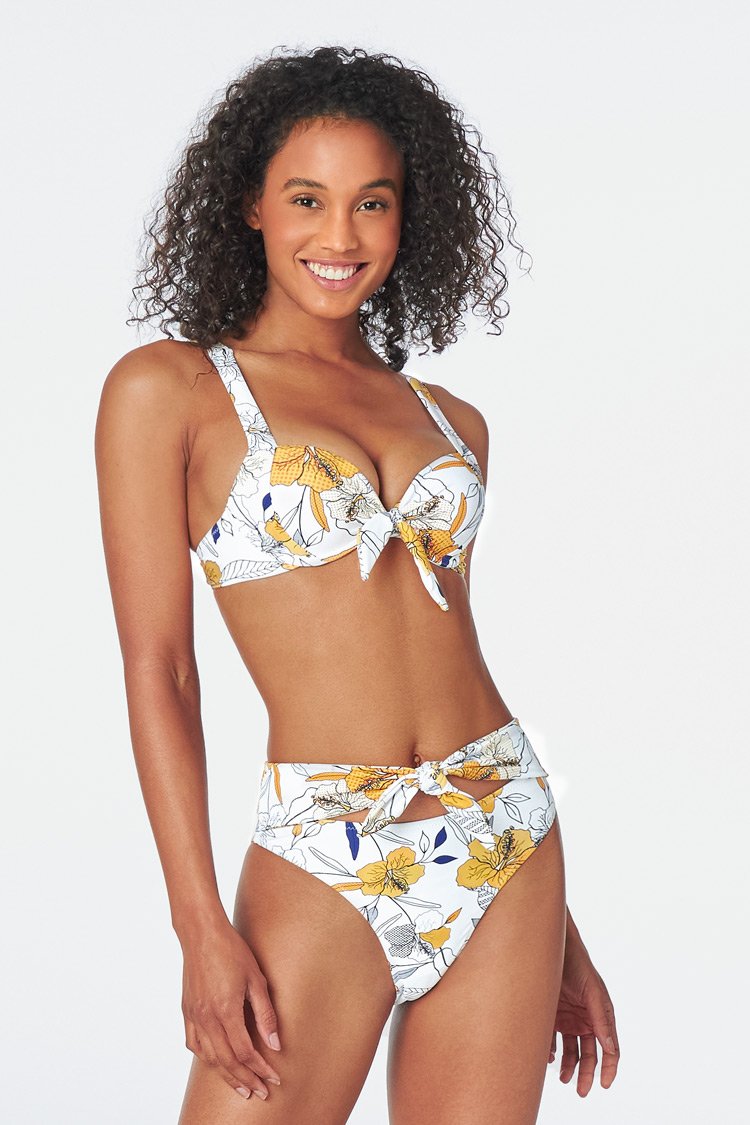 HomeWhite Floral Knotted Cutout Bikini Bottom