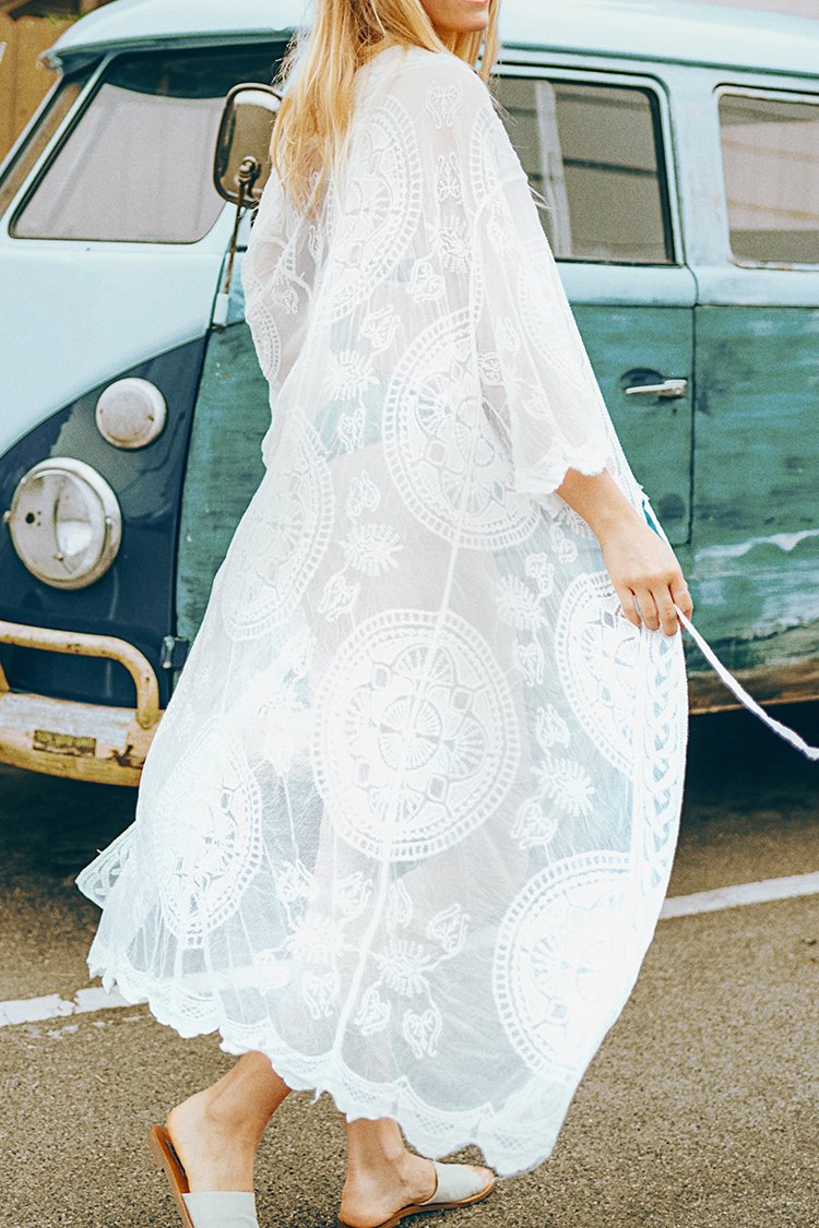 HomeWhite Lace Kimono Cover Up