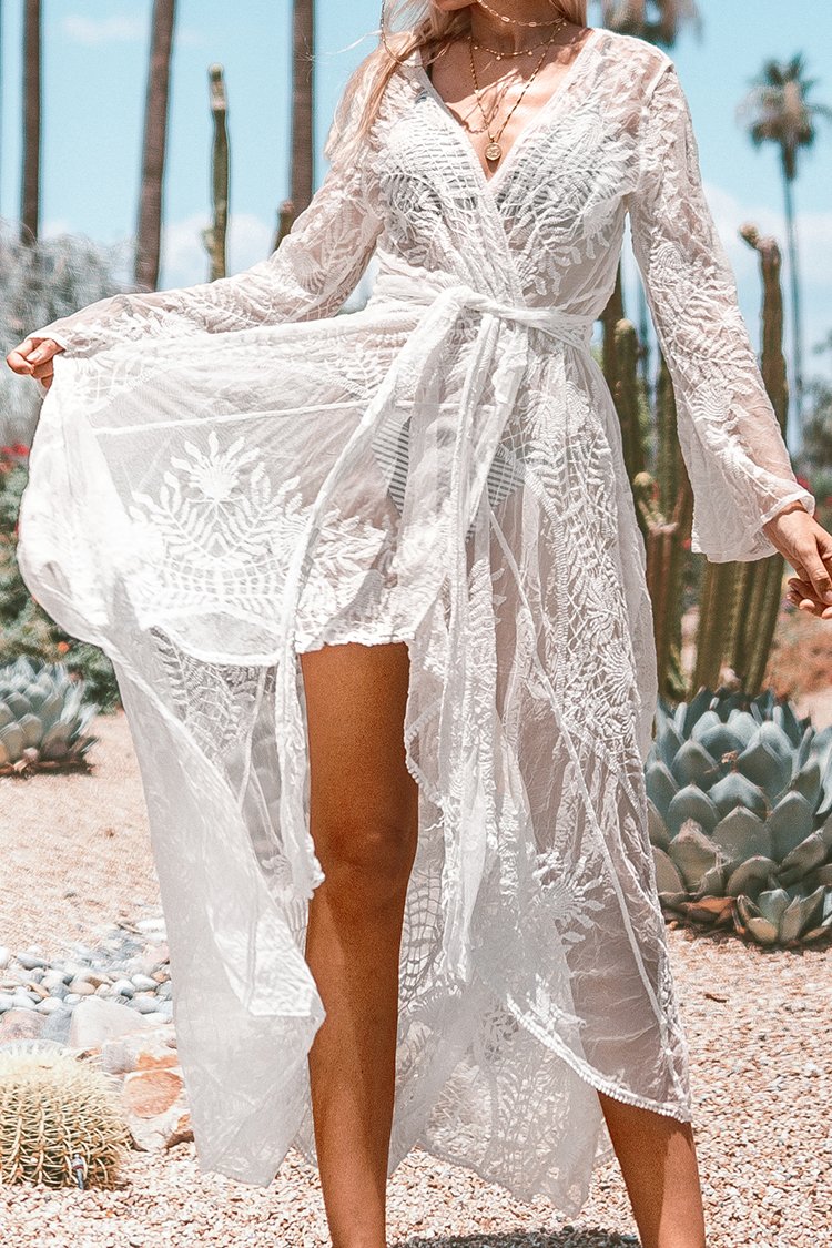 White Lace Maxi Wrap Cover Up