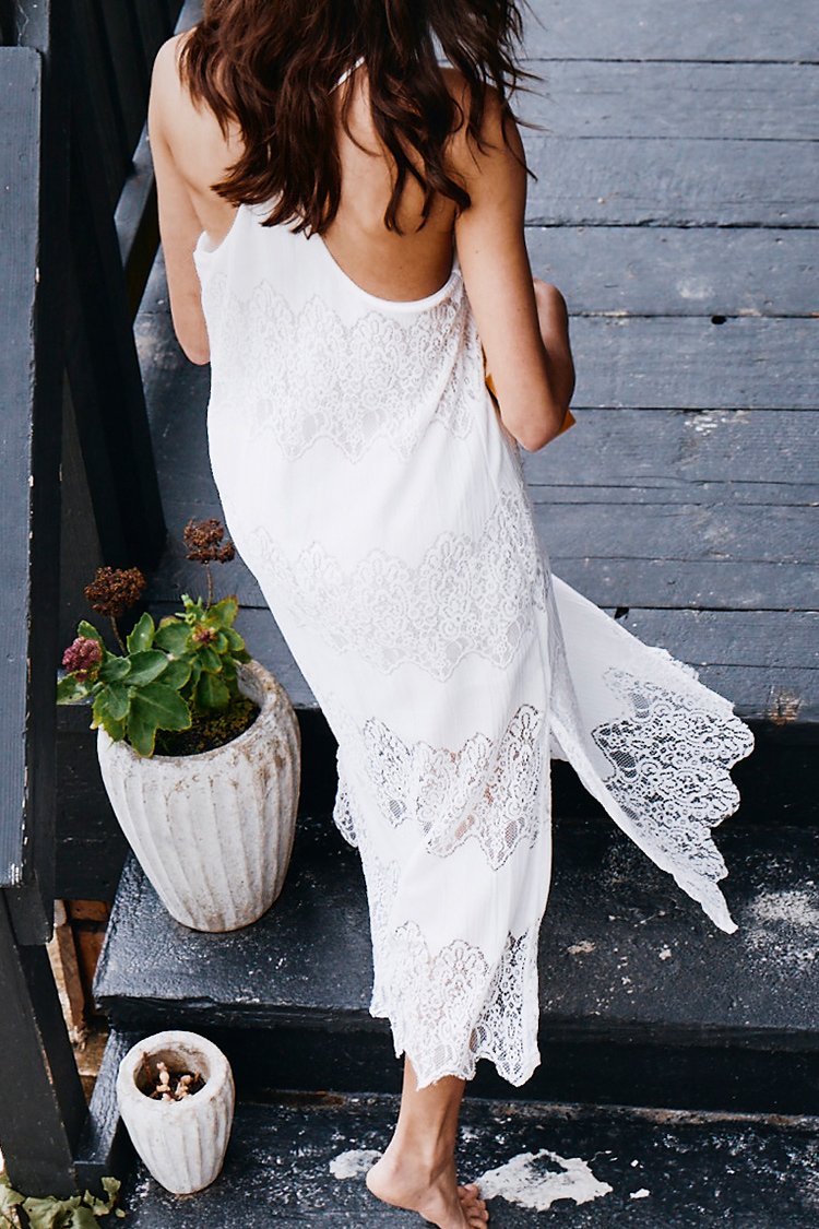 HomeWhite Lace Side Slit Slip Dress