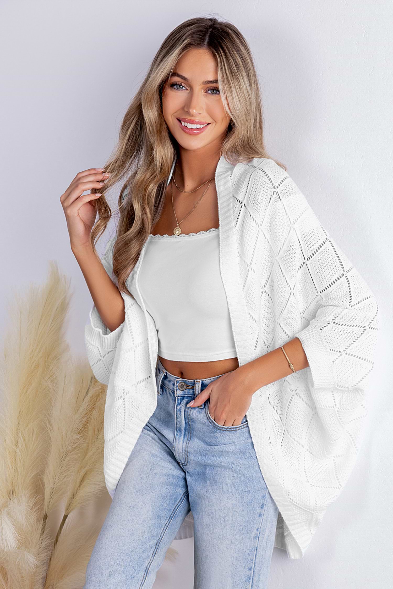 HomeWhite Open Front Dolman Sleeve Knit Cardigan