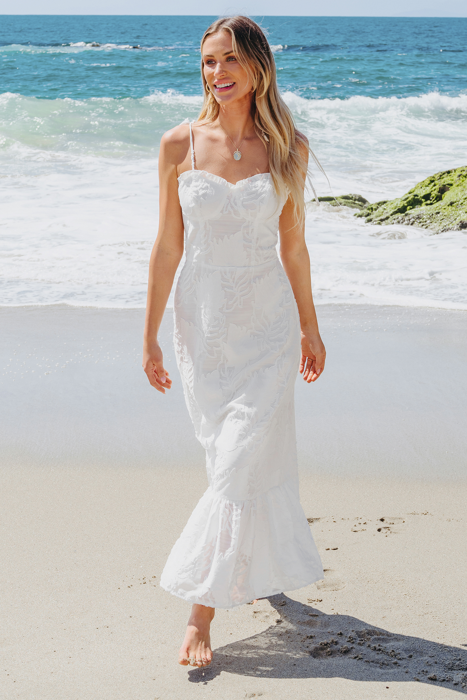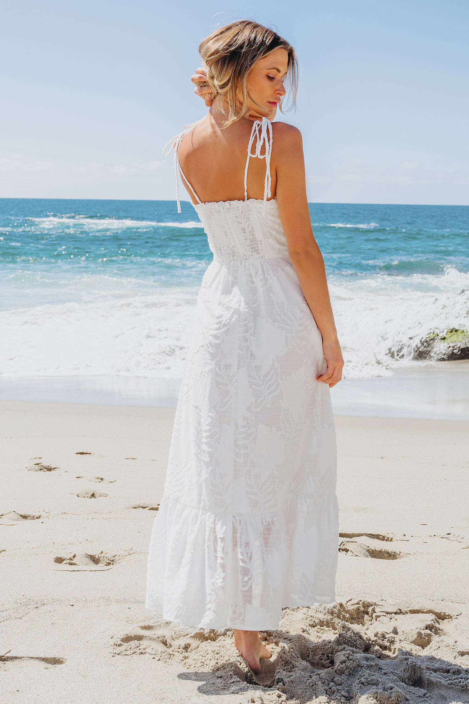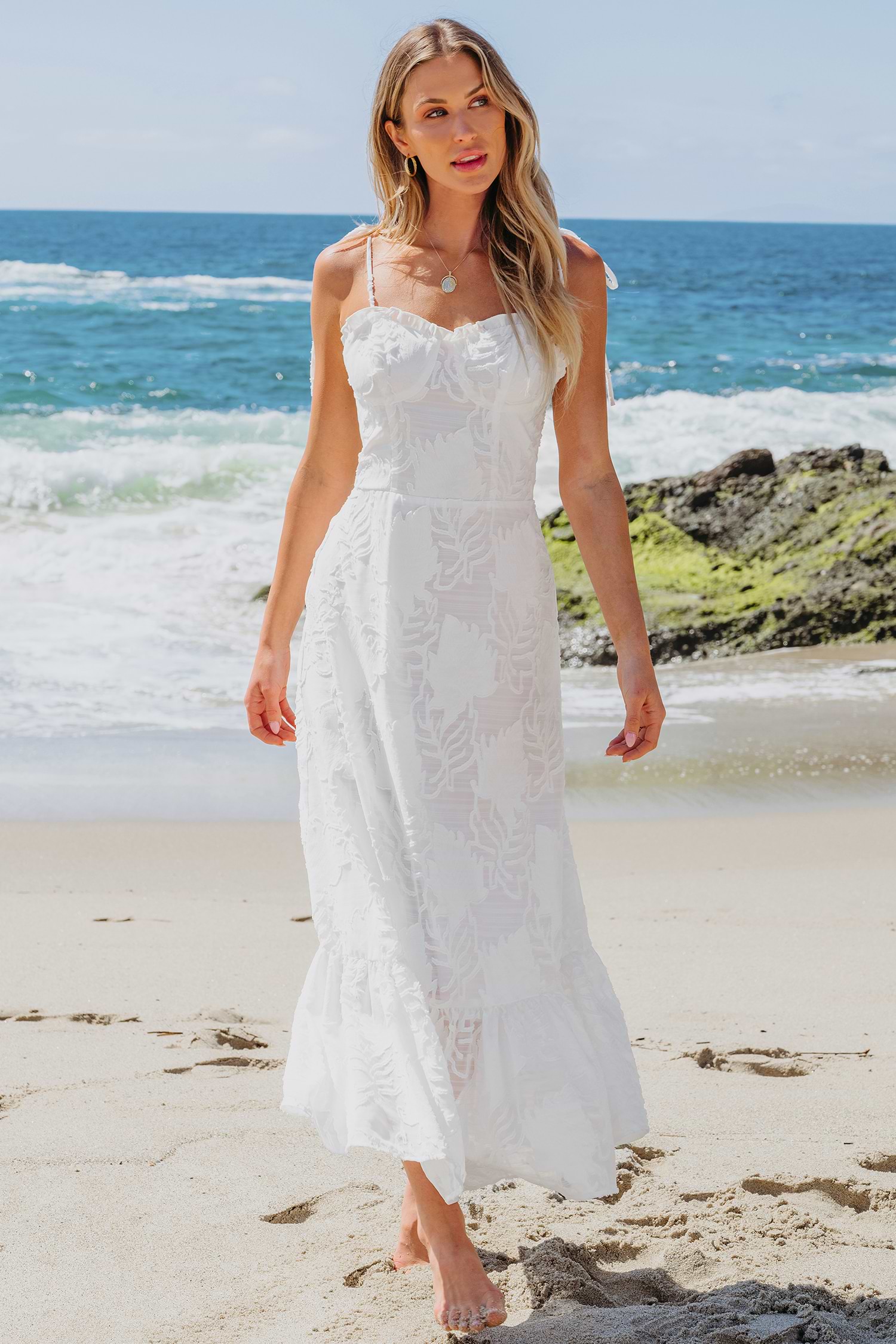 HomeWhite Sweetheart Tie Shoulder Flounce Hem Maxi Dress