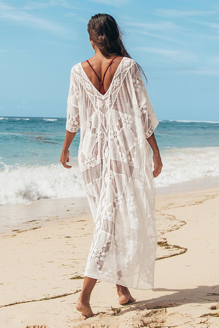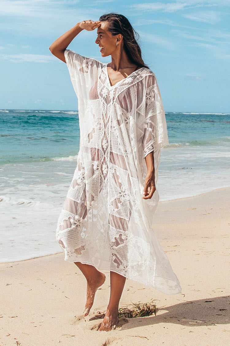 • White V-Neck Crochet Cover Up