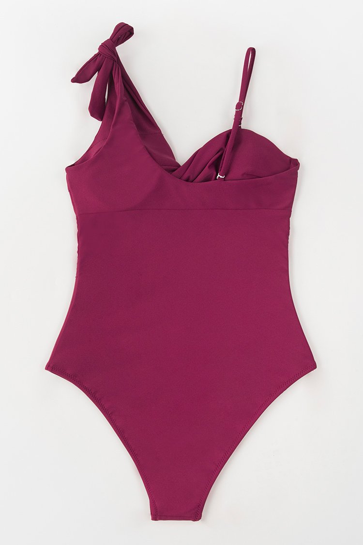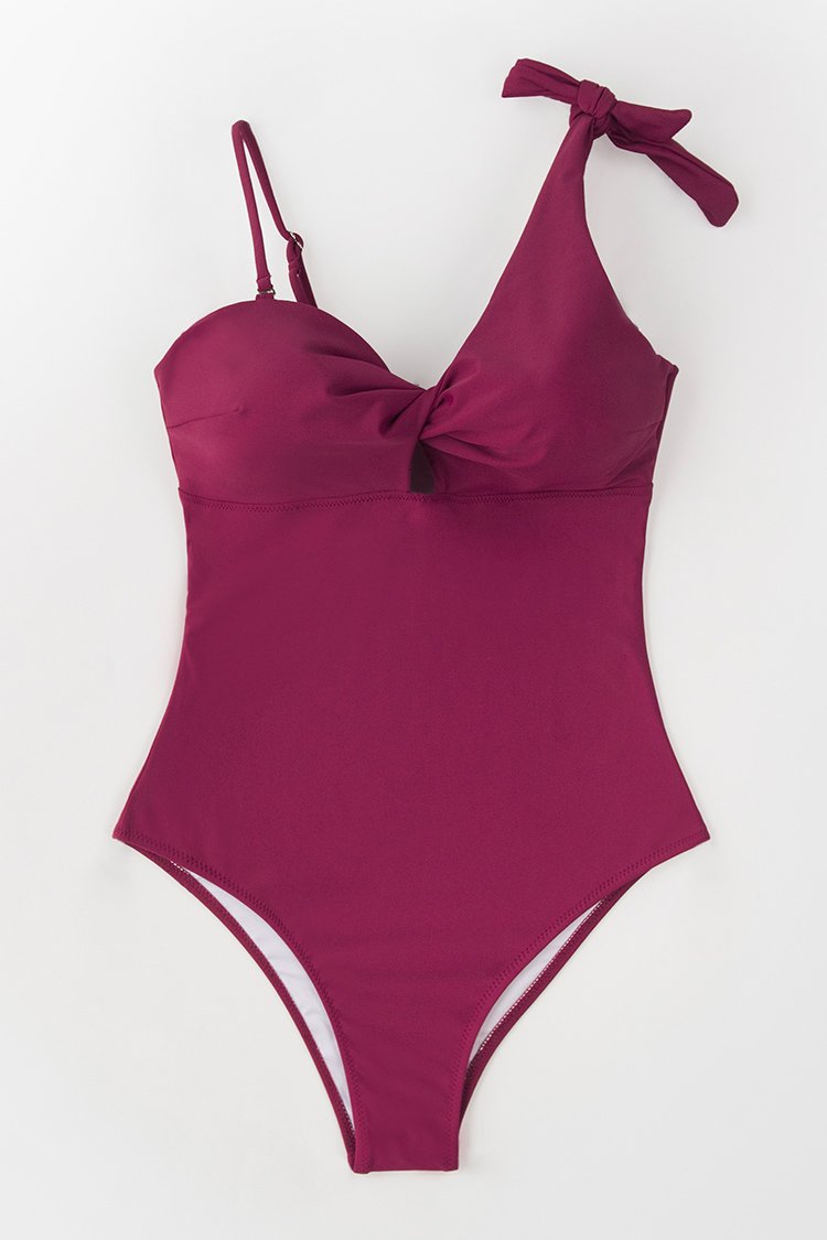 Wine Red Twist One Piece Swimsuit