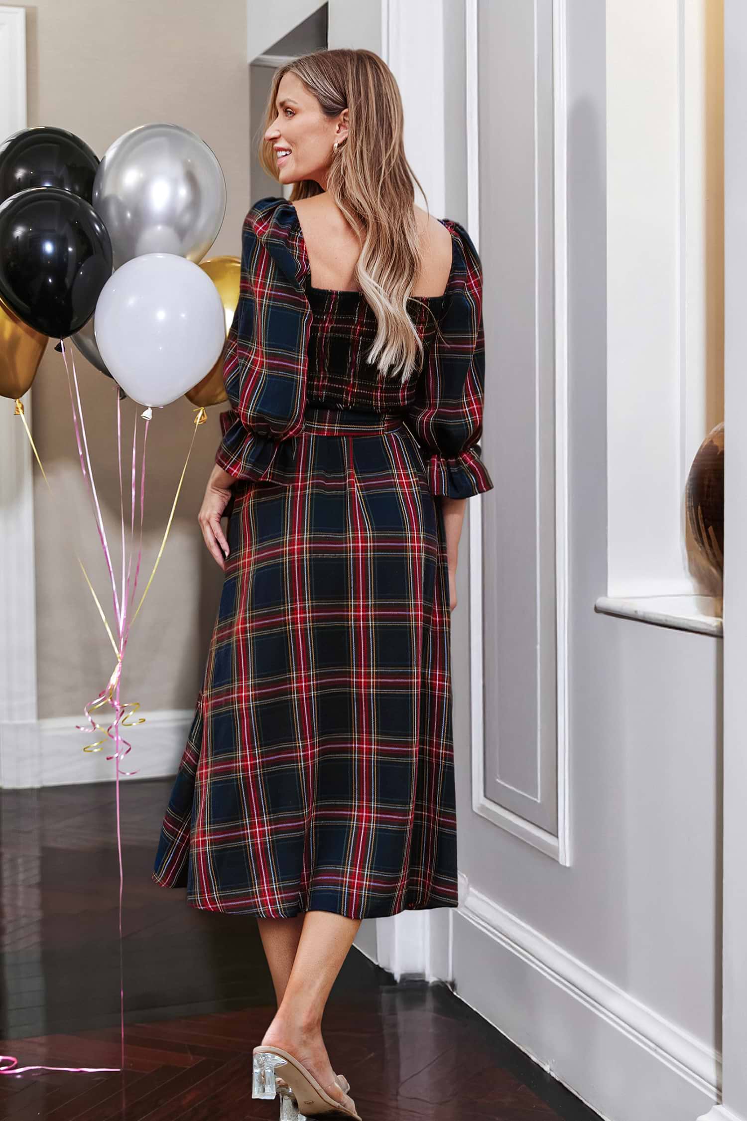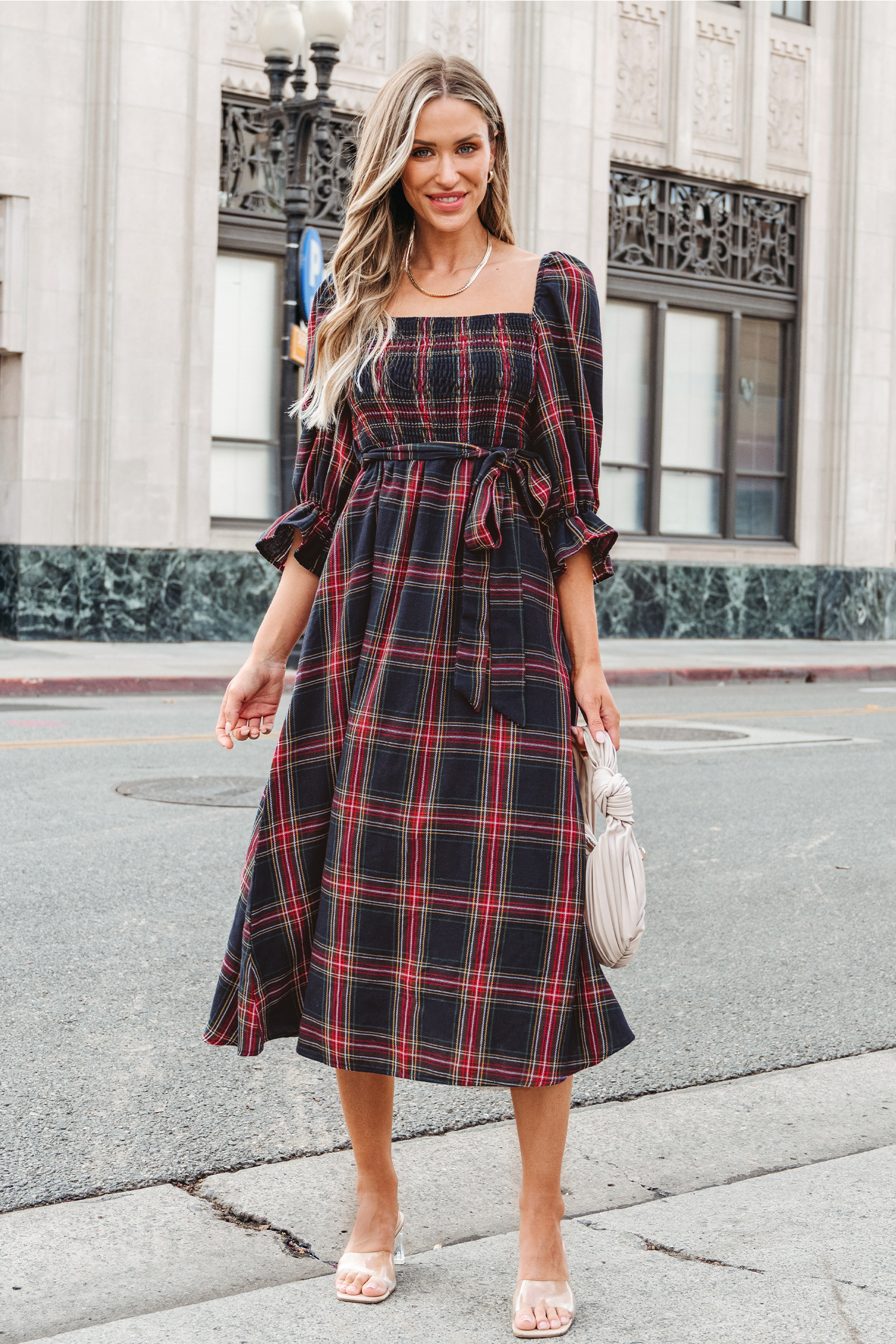 Embrace timeless elegance in our X Gabby Windey Belted Plaid Smocked Maxi Dress. Featuring a chic plaid pattern and a flattering smocked bodice, this dress combines sophistication with comfort. Complete with a stylish belt, it offers a perfect fit and a touch of modern flair.