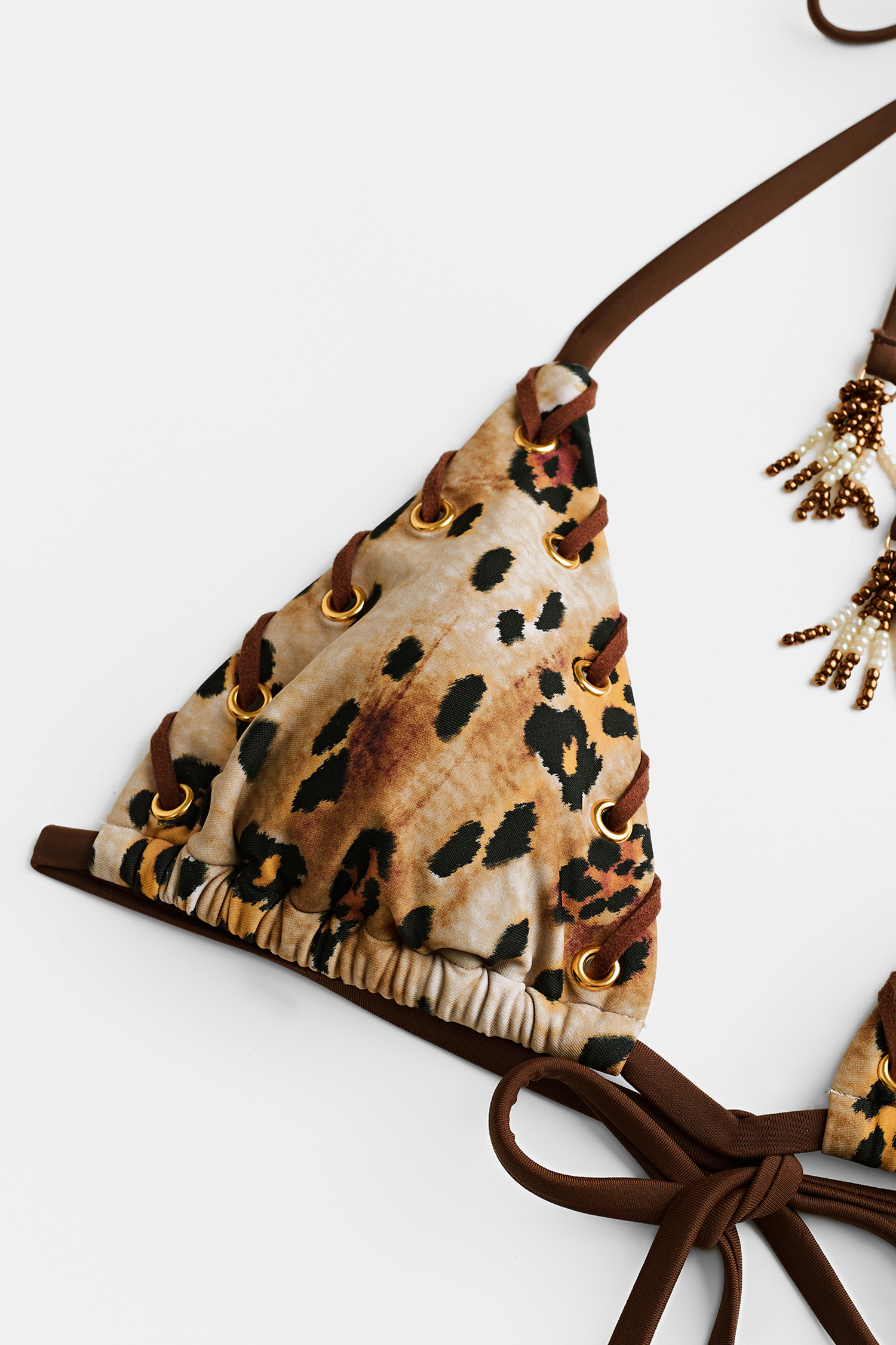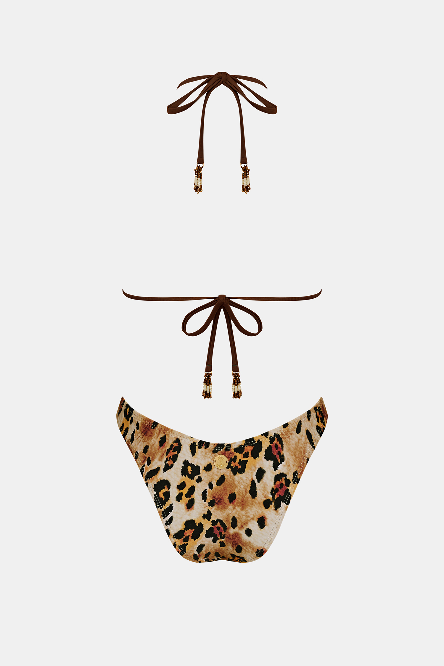 The Catwalk Leopard Bikini Set keeps things bold and effortless! A diamond neckline and halter straps pair with an ultra high-cut leg and ultra cheeky bum coverage for a flirty, modern fit.