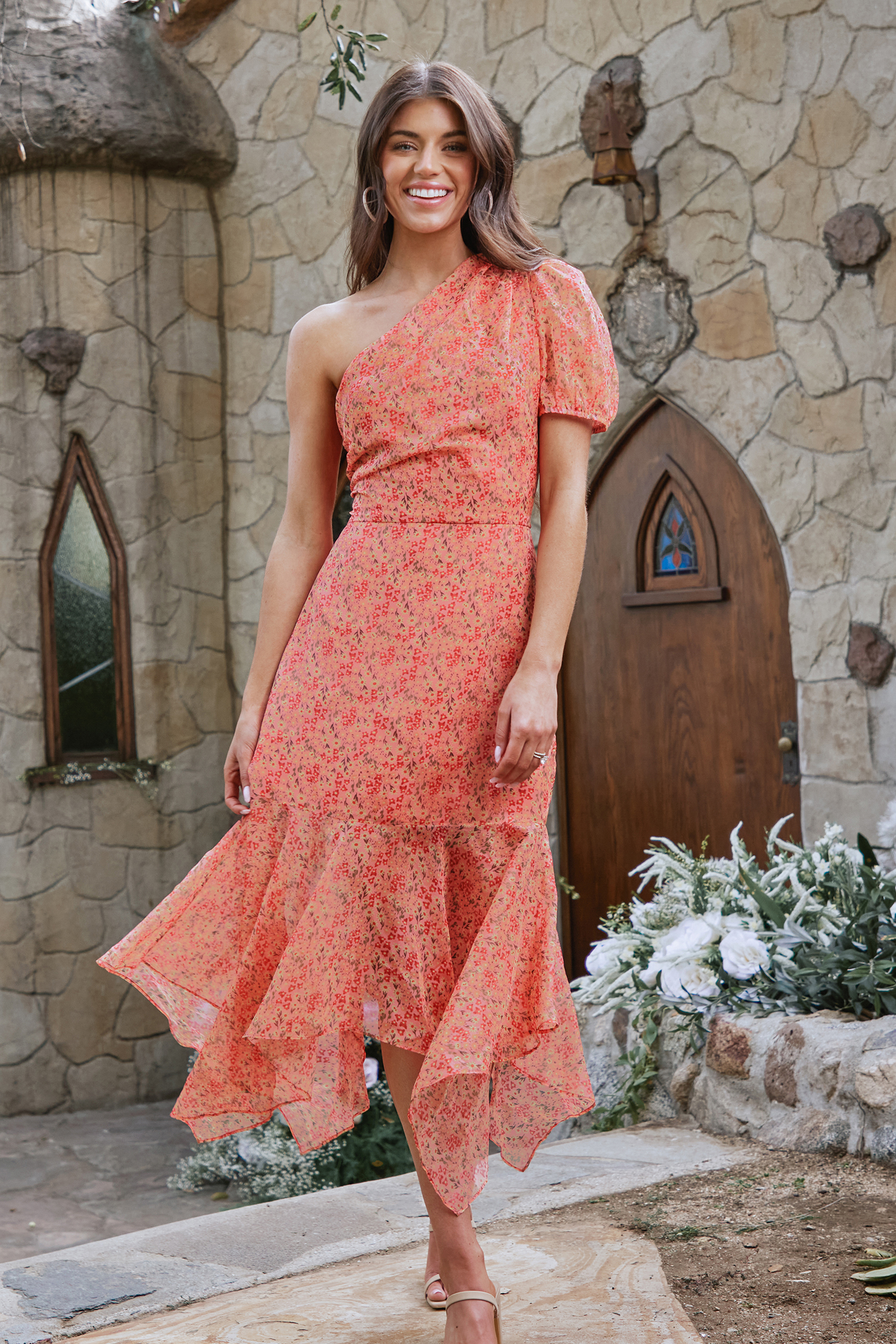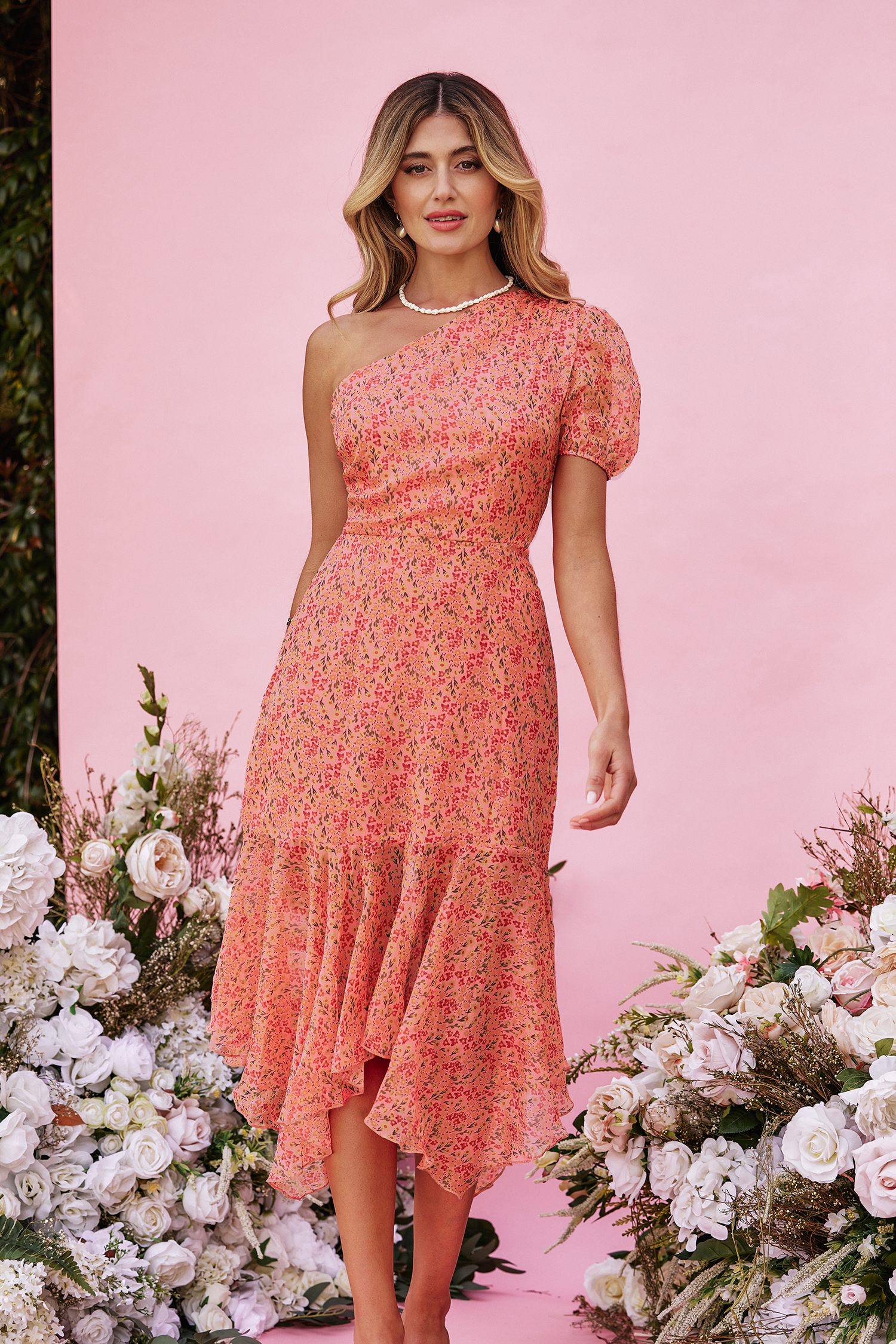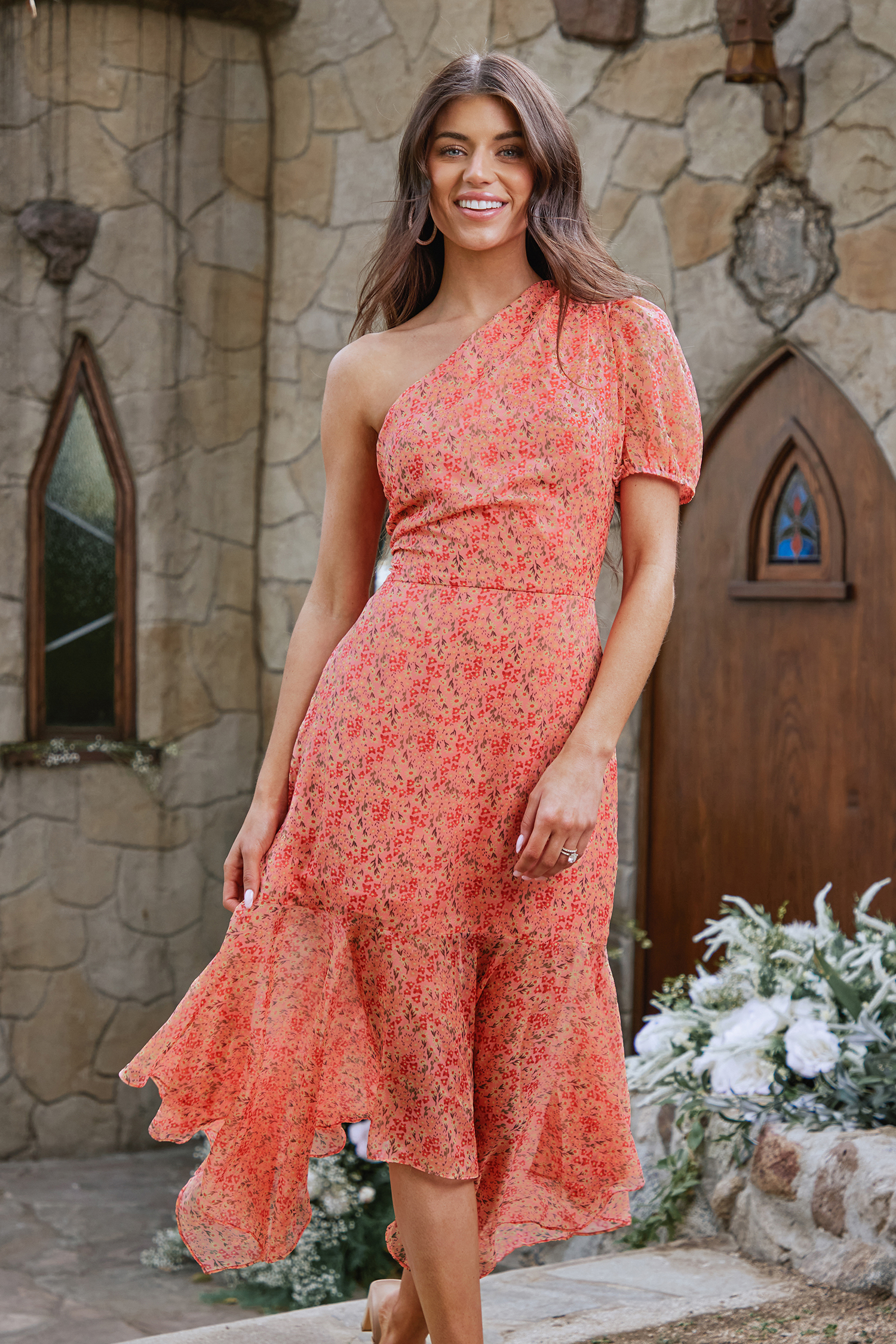 X Madison Devotion Floral One-Shoulder Dress