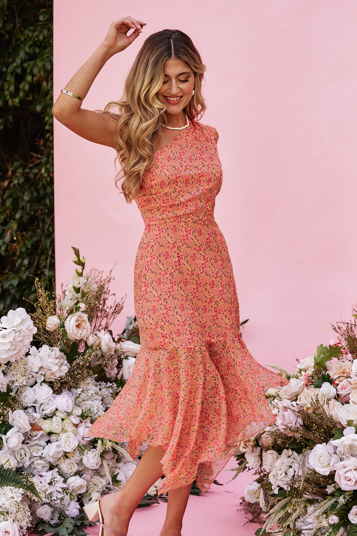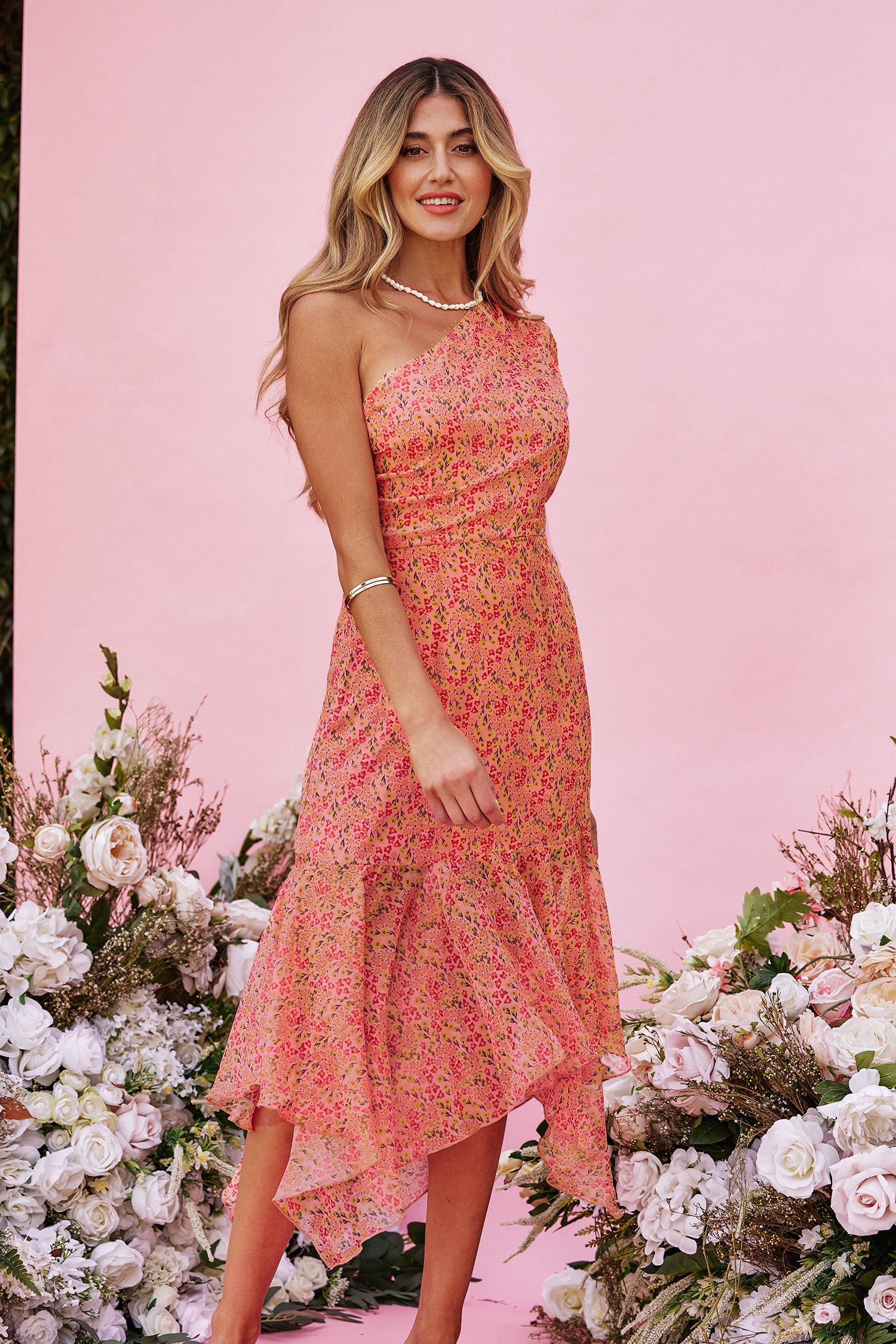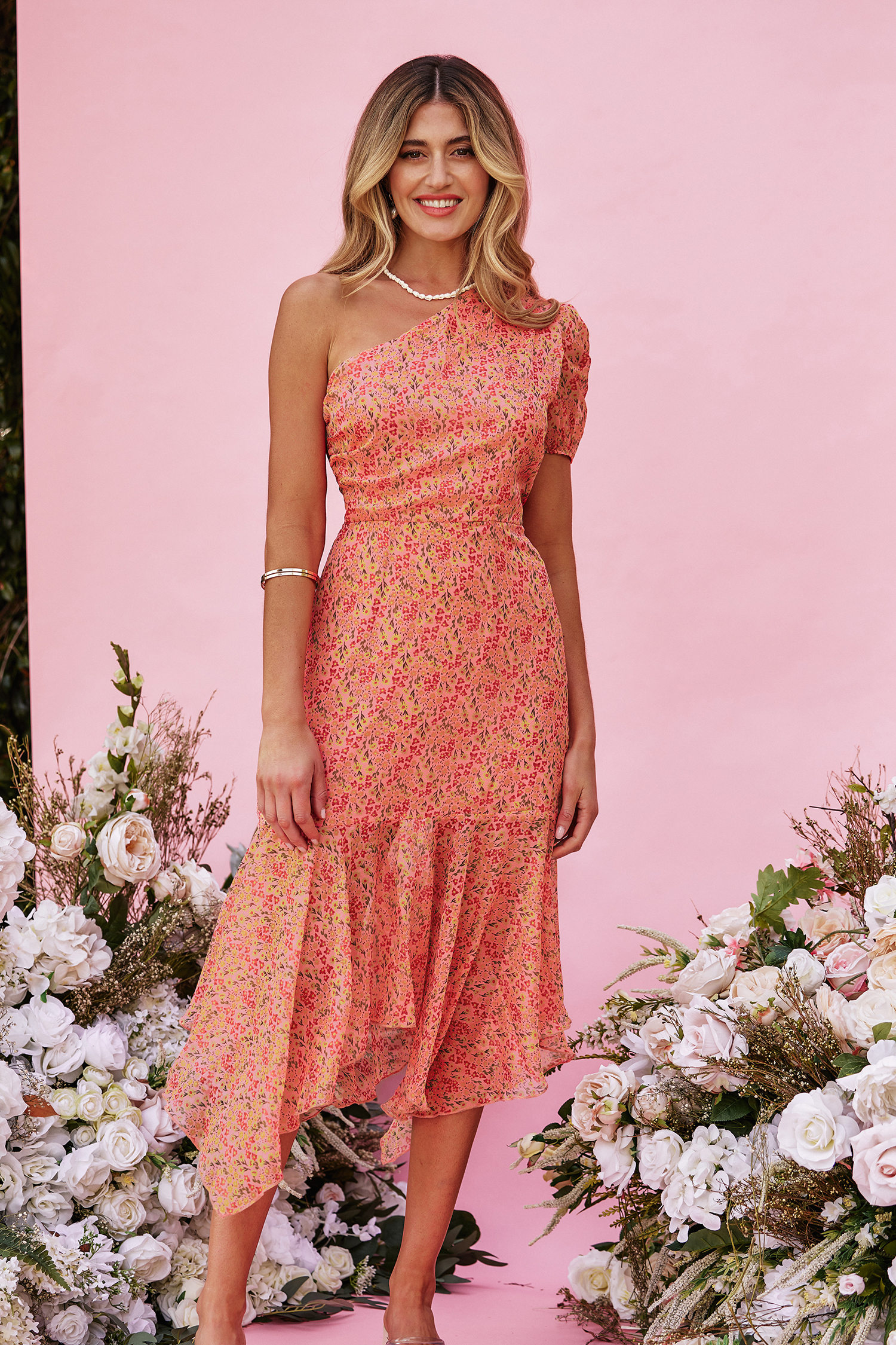 X Madison Devotion Floral One-Shoulder Dress