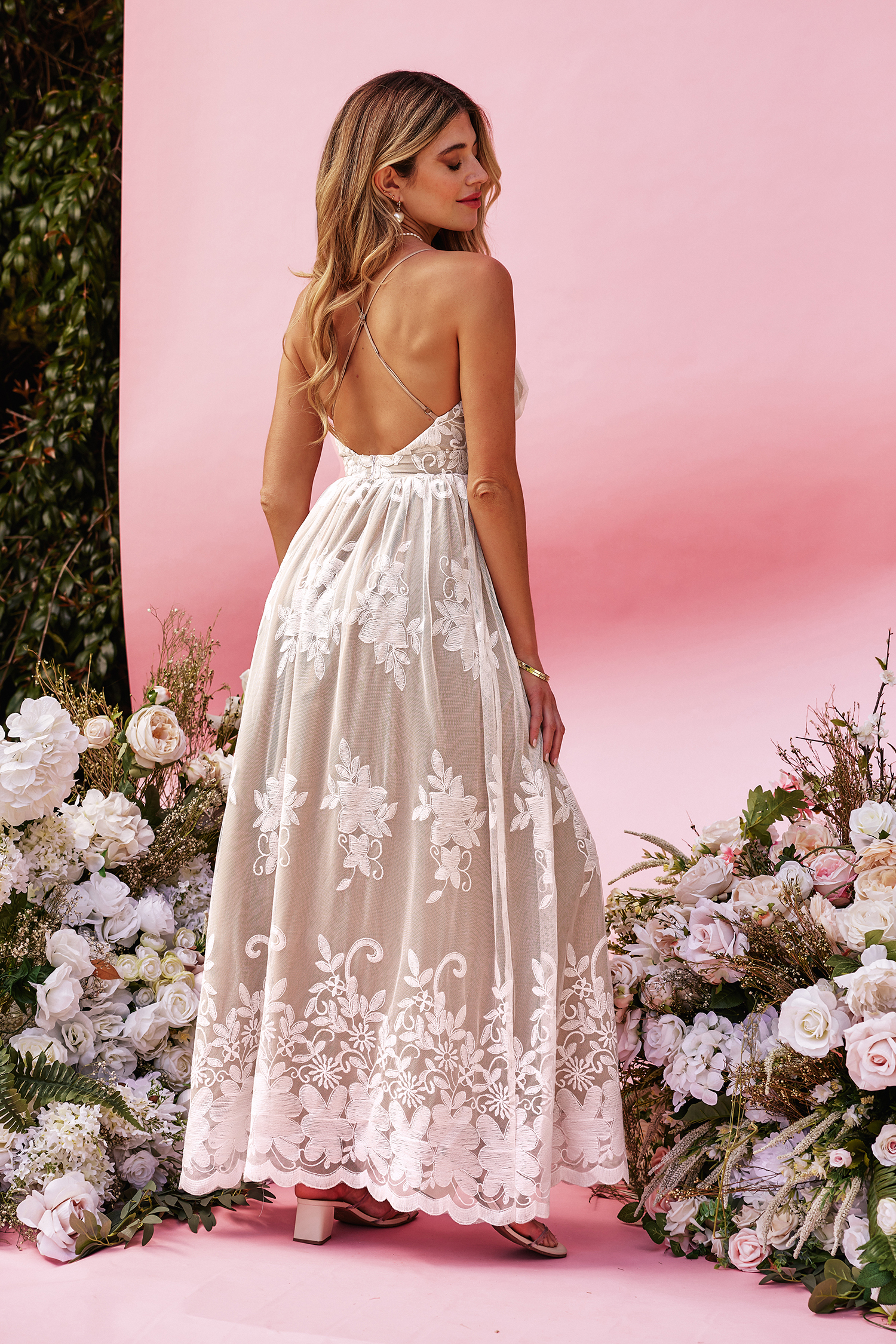 HomeX Madison Love Cross Back Lace Maxi Dress