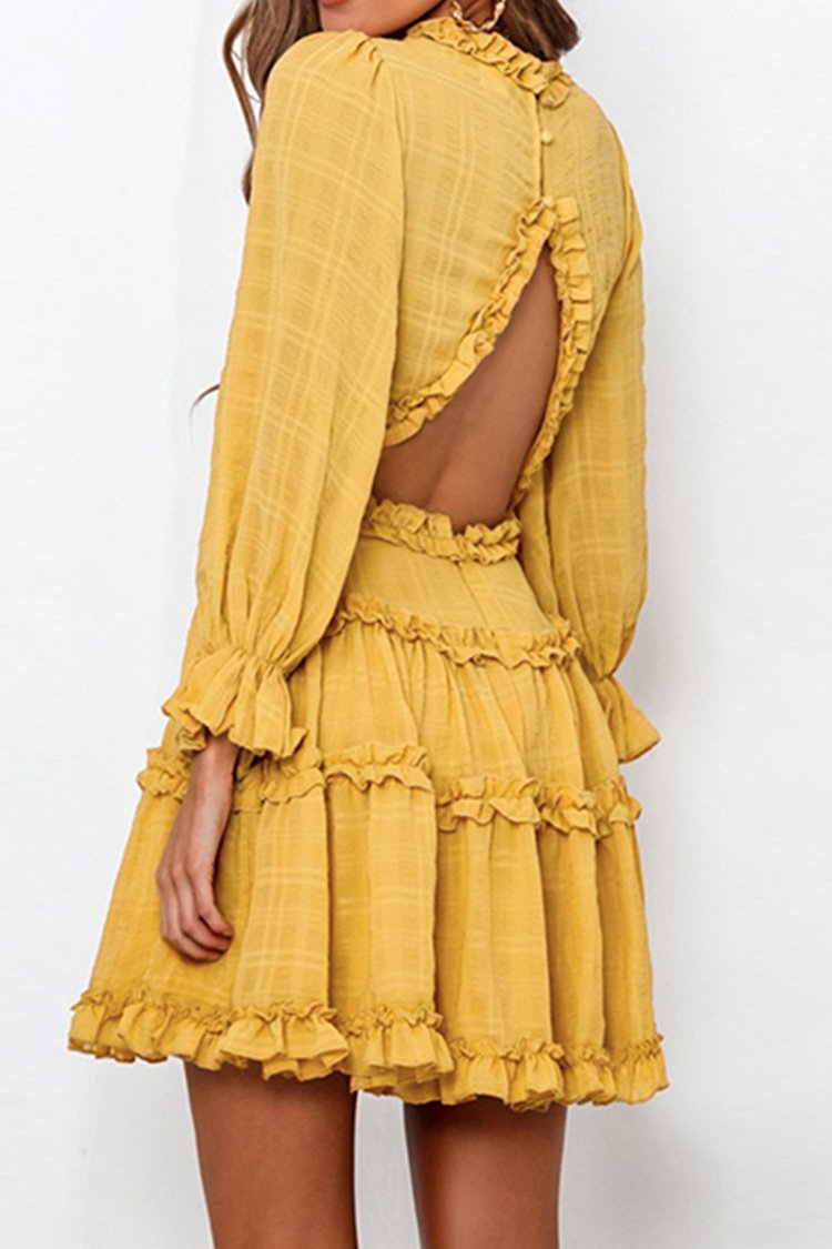 • Yellow Babydoll Ruffled Dress