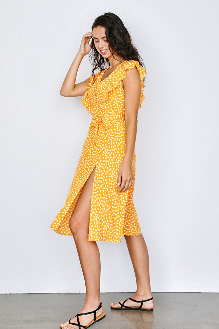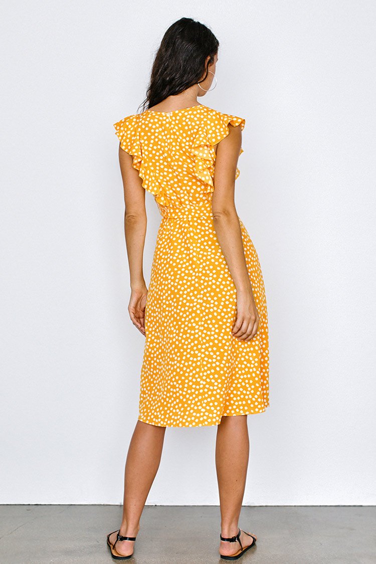 HomeYellow Polka Dot Ruffled Wrap Dress