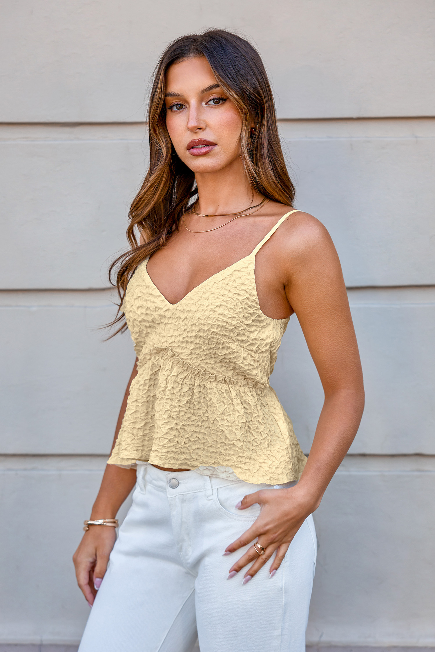 HomeYellow Textured V-Neck Cropped Cami