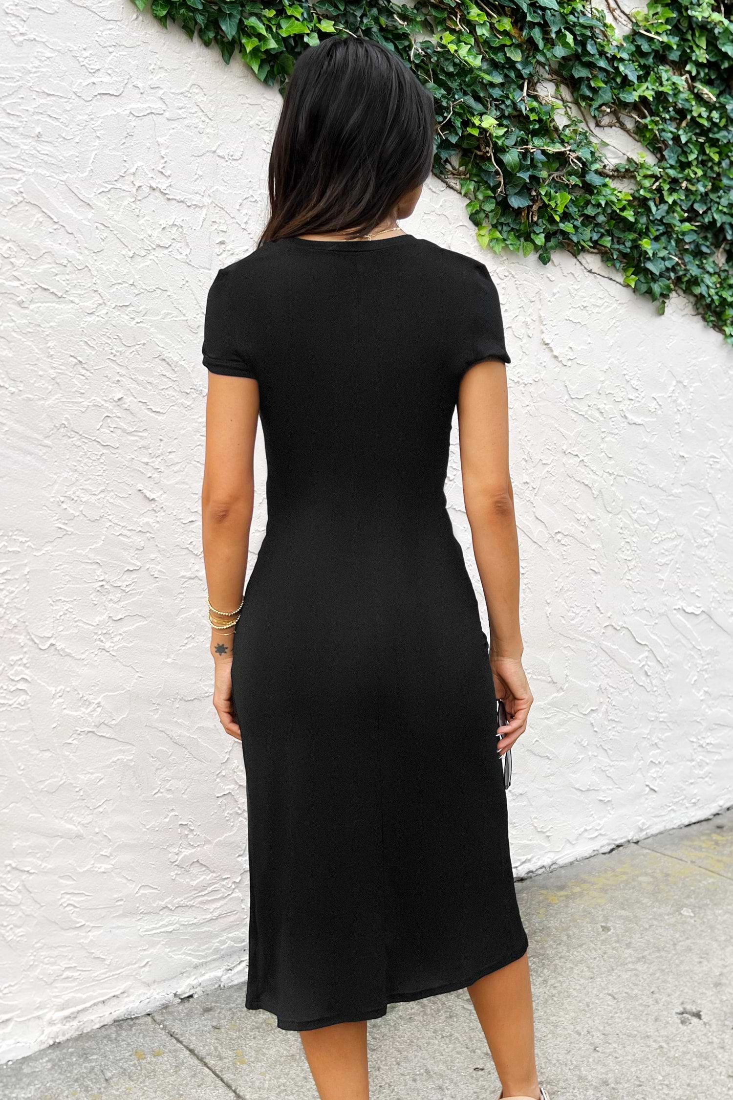 HomeZola Round Neck Ruching Short Sleeve Dress